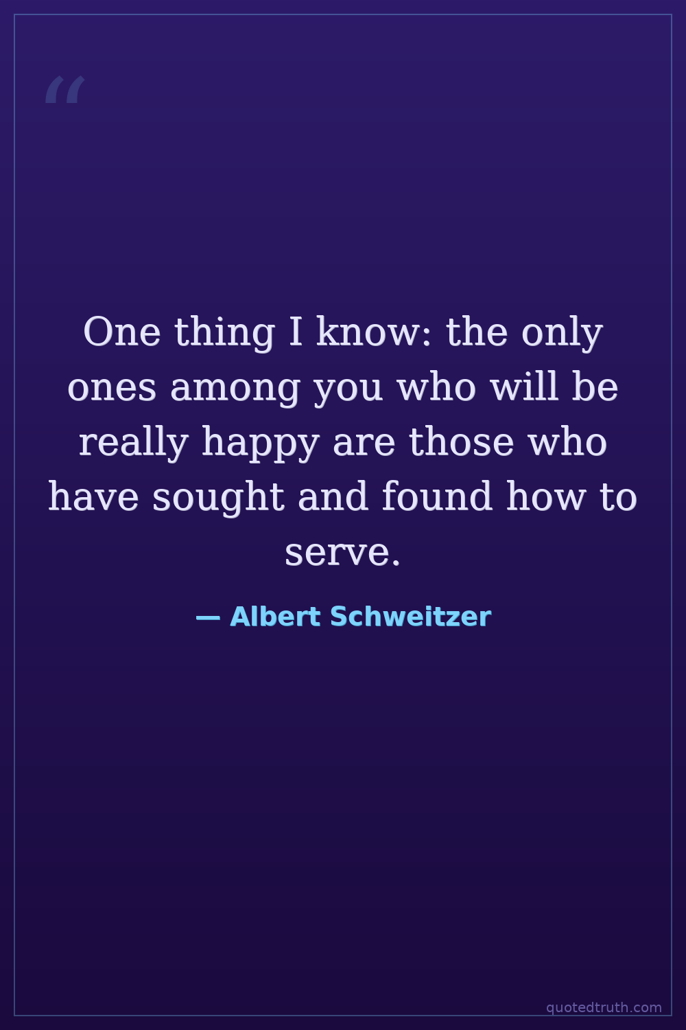 One thing I know: the only ones among you who will be really happy are those who have sought and found how to serve.