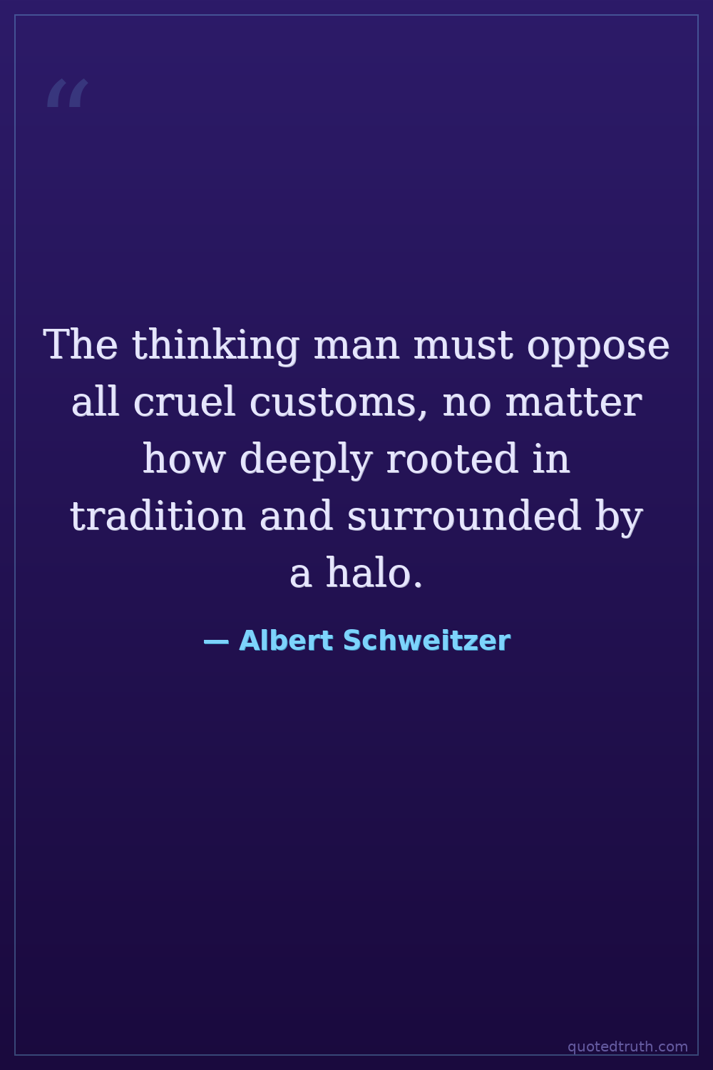 The thinking man must oppose all cruel customs, no matter how deeply rooted in tradition and surrounded by a halo.