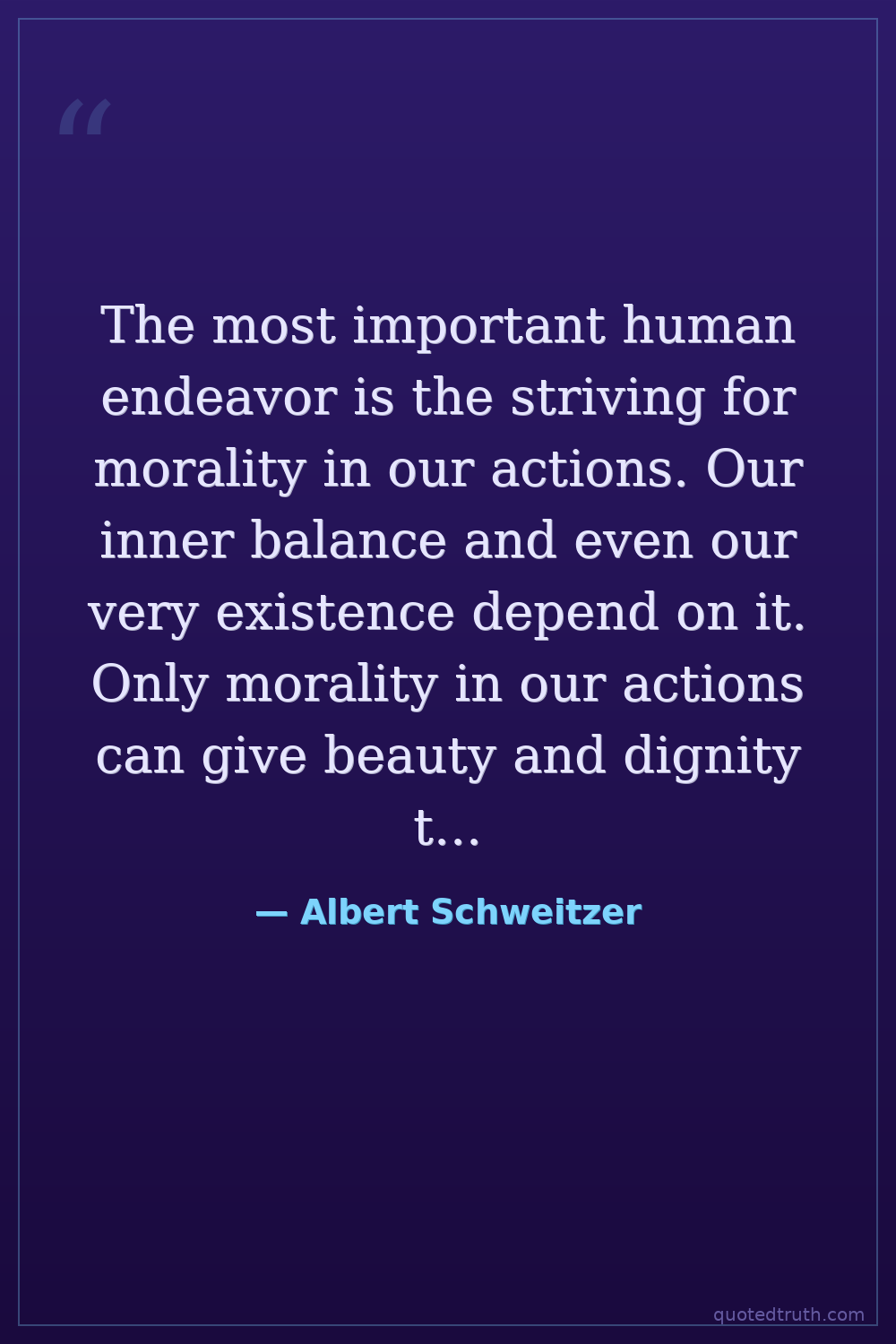 The most important human endeavor is the striving for morality in our actions. Our inner balance and even our very existence depend on it. Only morality in our actions can give beauty and dignity to life.