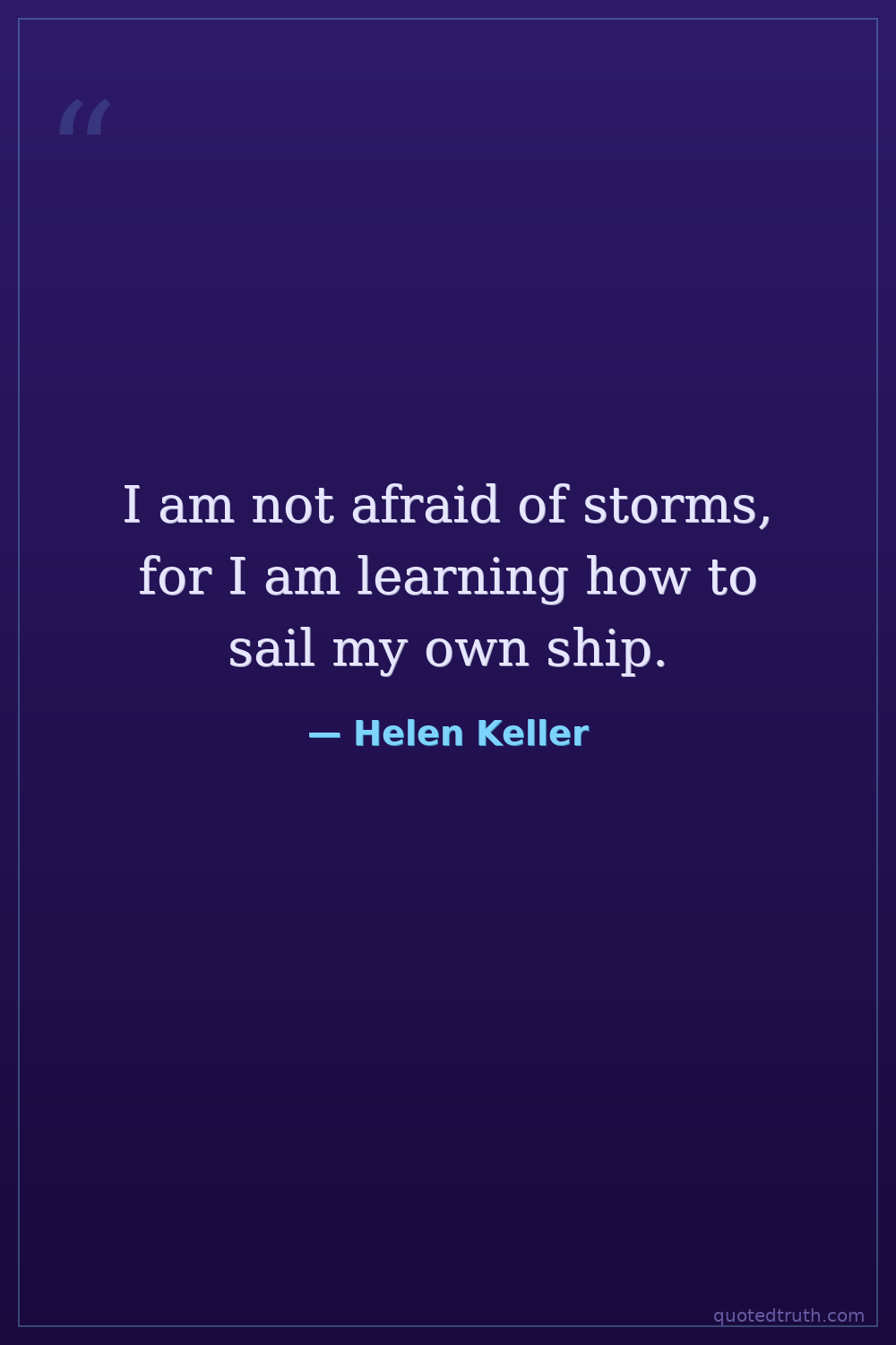 I am not afraid of storms, for I am learning how to sail my own ship.