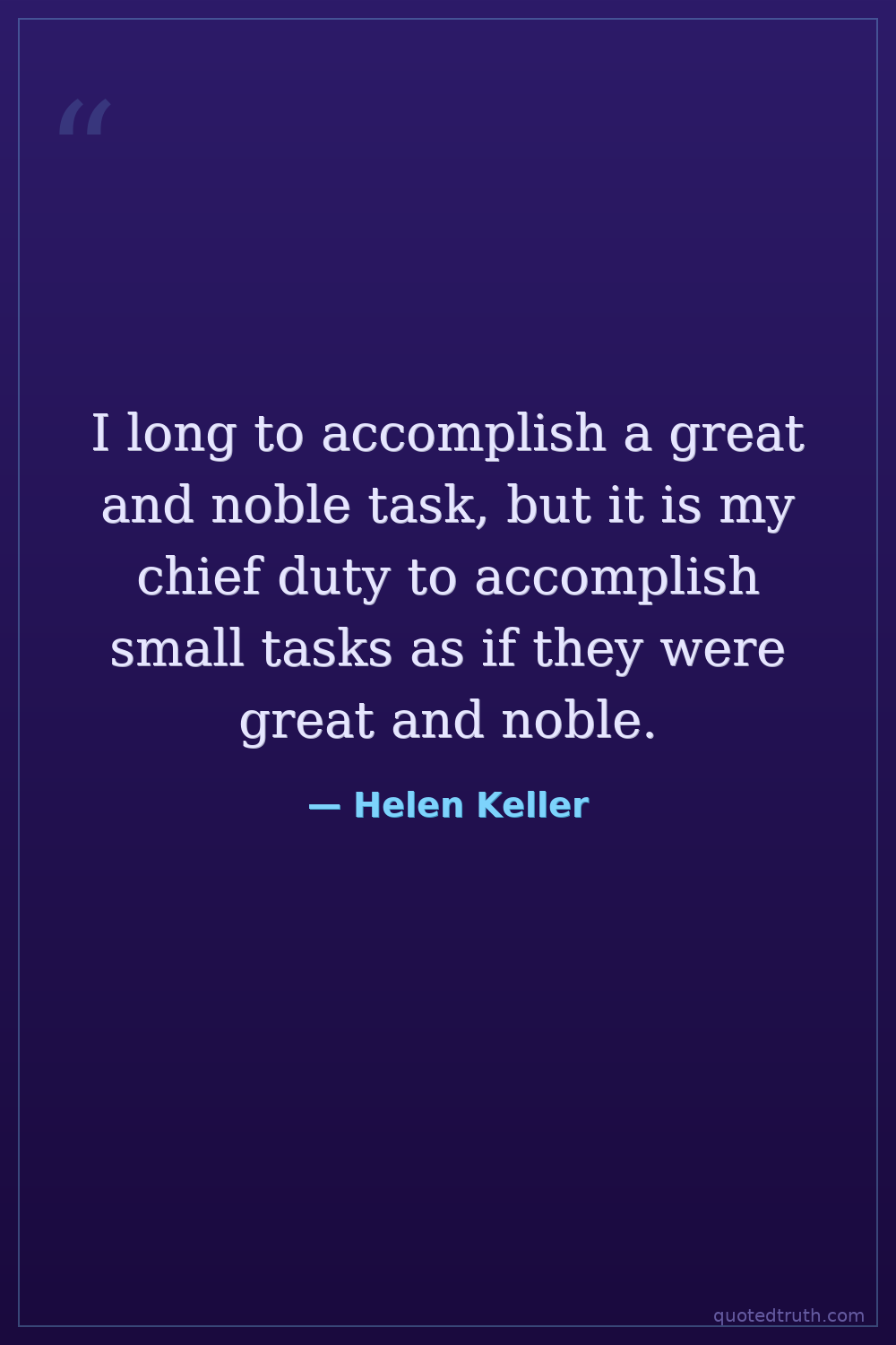 I long to accomplish a great and noble task, but it is my chief duty to accomplish small tasks as if they were great and noble.