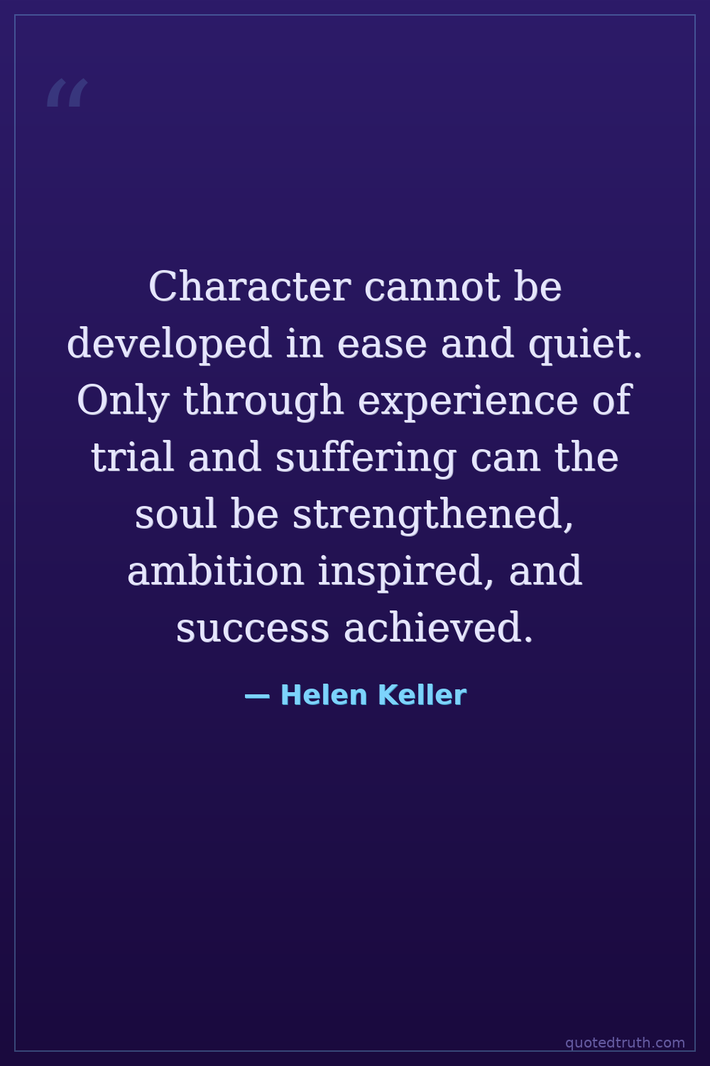 Character cannot be developed in ease and quiet. Only through experience of trial and suffering can the soul be strengthened, ambition inspired, and success achieved.