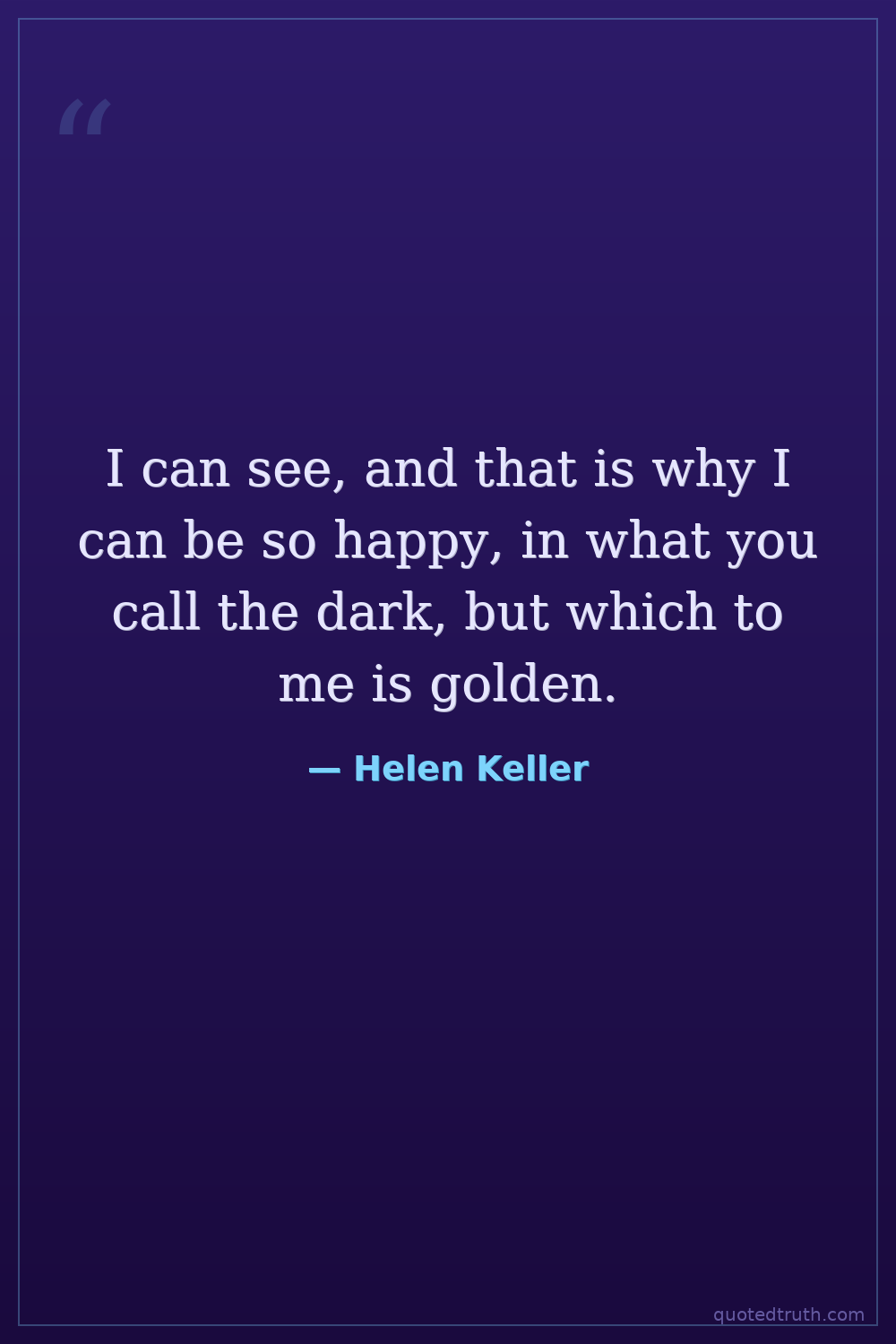 I can see, and that is why I can be so happy, in what you call the dark, but which to me is golden.