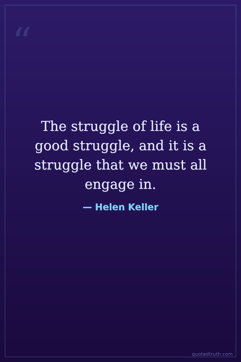 The struggle of life is a good struggle, and it is a struggle that we must all engage in.