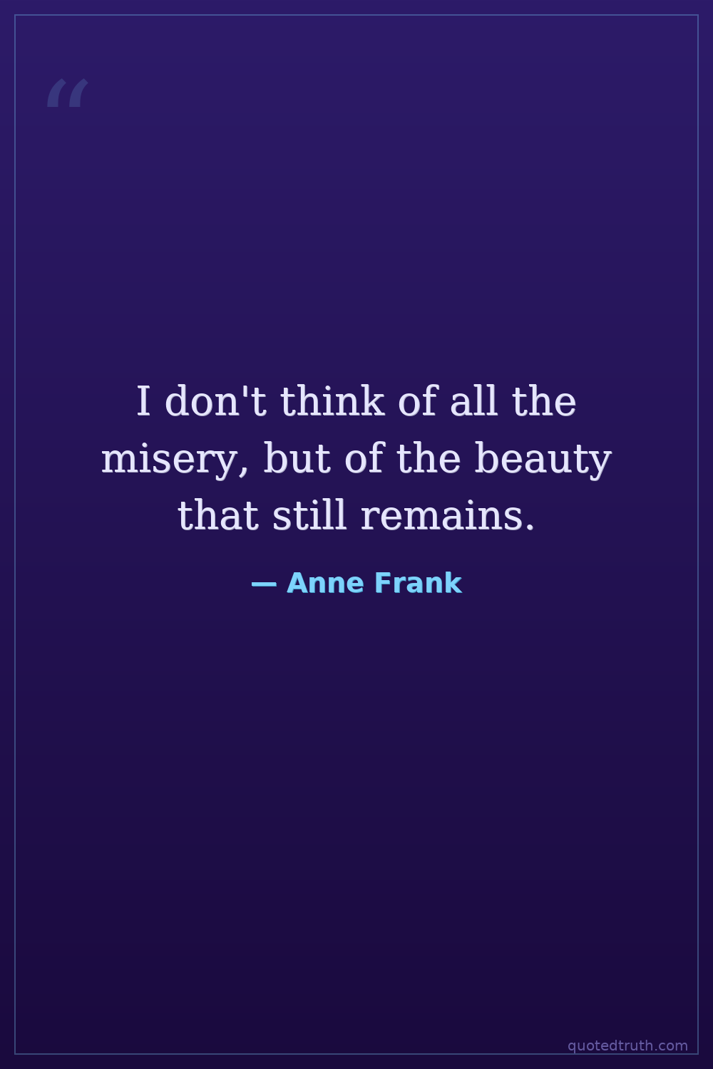 I don't think of all the misery, but of the beauty that still remains.