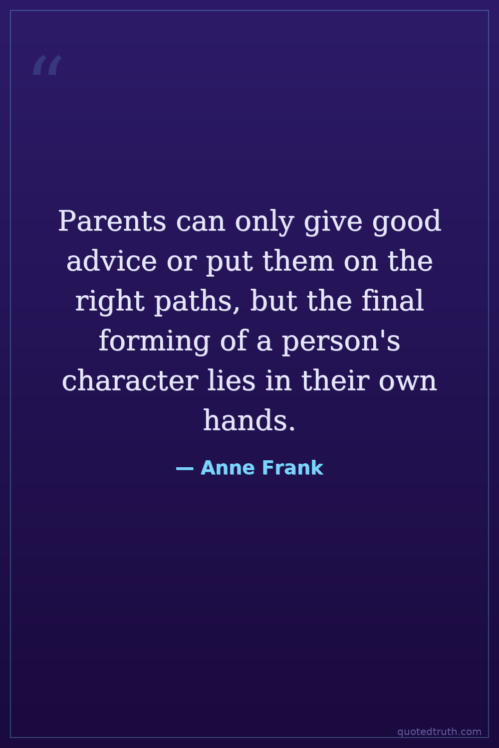 Parents can only give good advice or put them on the right paths, but the final forming of a person's character lies in their own hands.