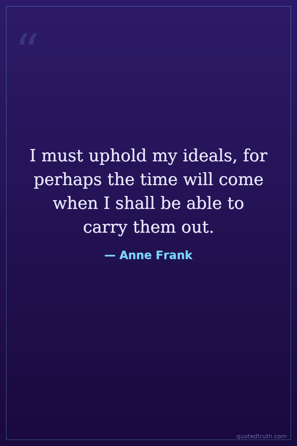 I must uphold my ideals, for perhaps the time will come when I shall be able to carry them out.