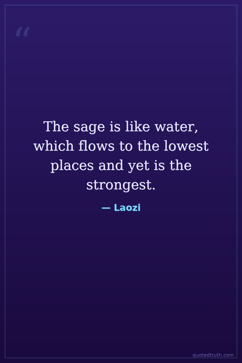 The sage is like water, which flows to the lowest places and yet is the strongest.