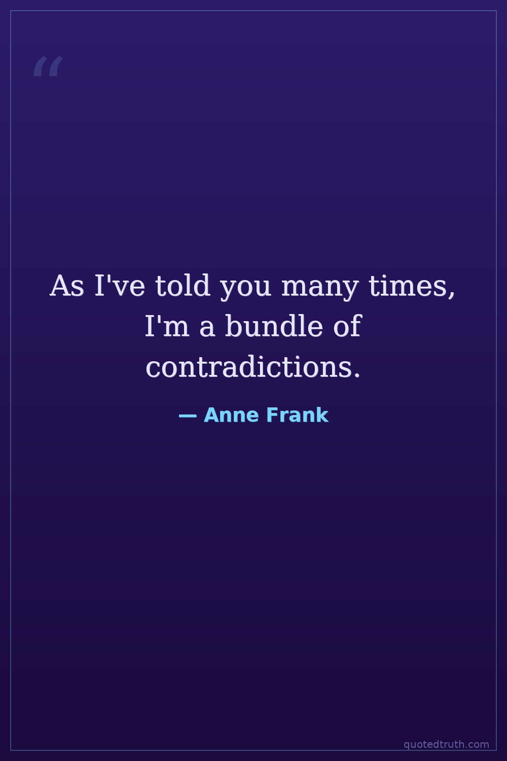 Controversial"I must uphold my ideals, for perhaps the time will come when I shall be able to carry them out."