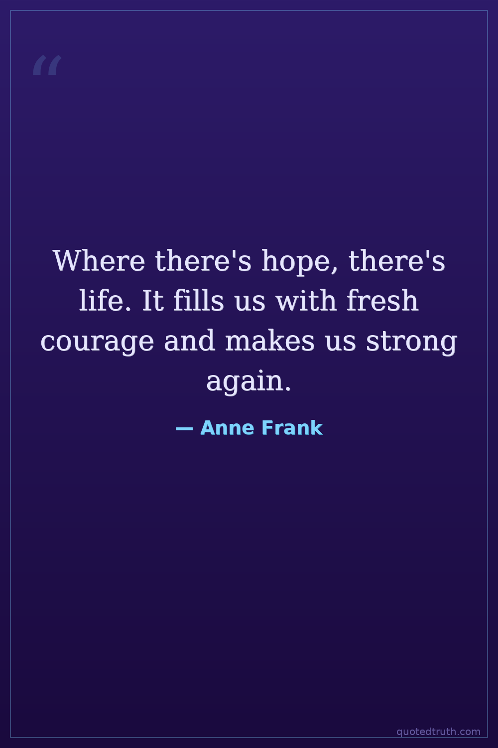 Where there's hope, there's life. It fills us with fresh courage and makes us strong again.