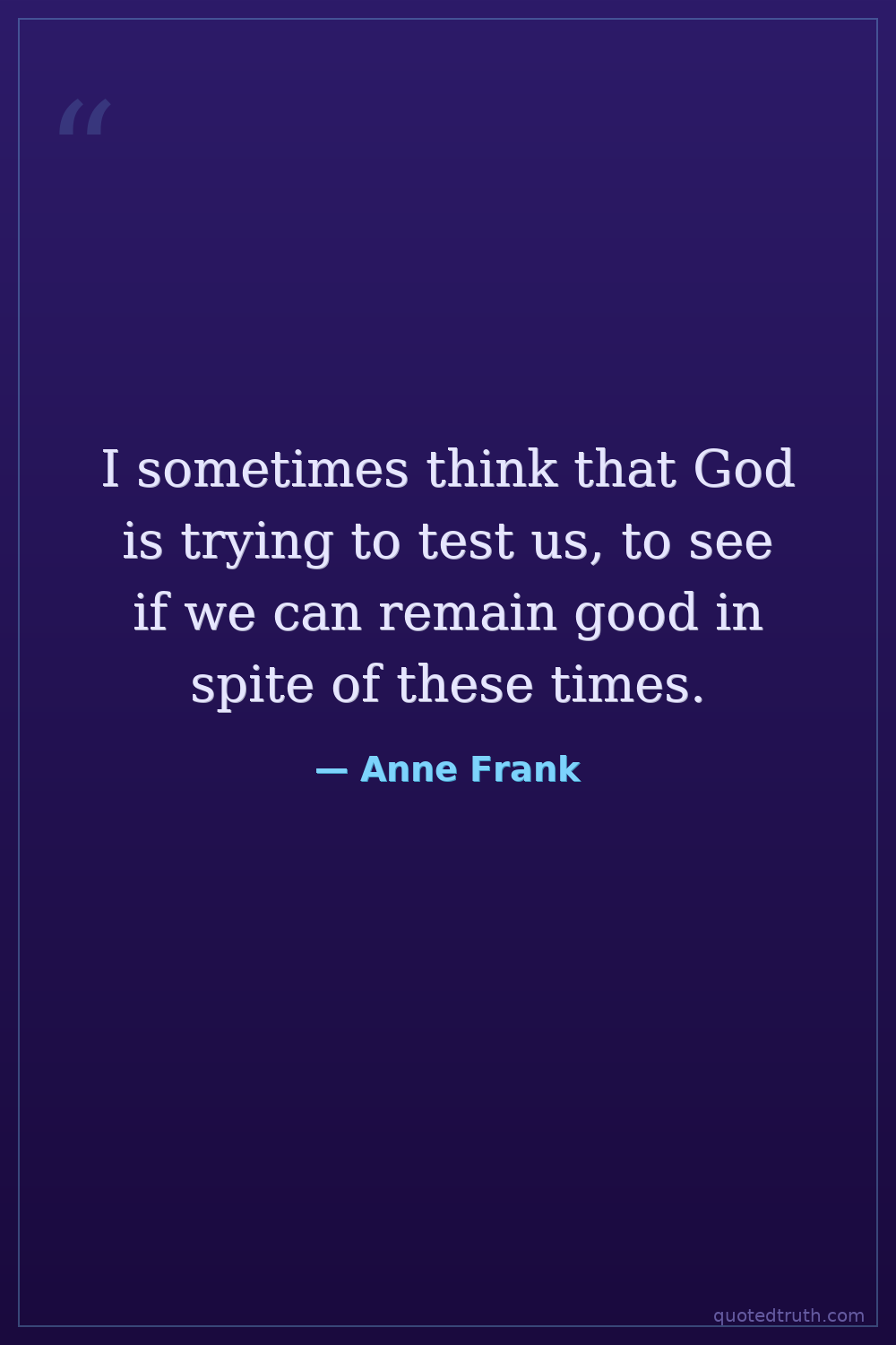 I sometimes think that God is trying to test us, to see if we can remain good in spite of these times.