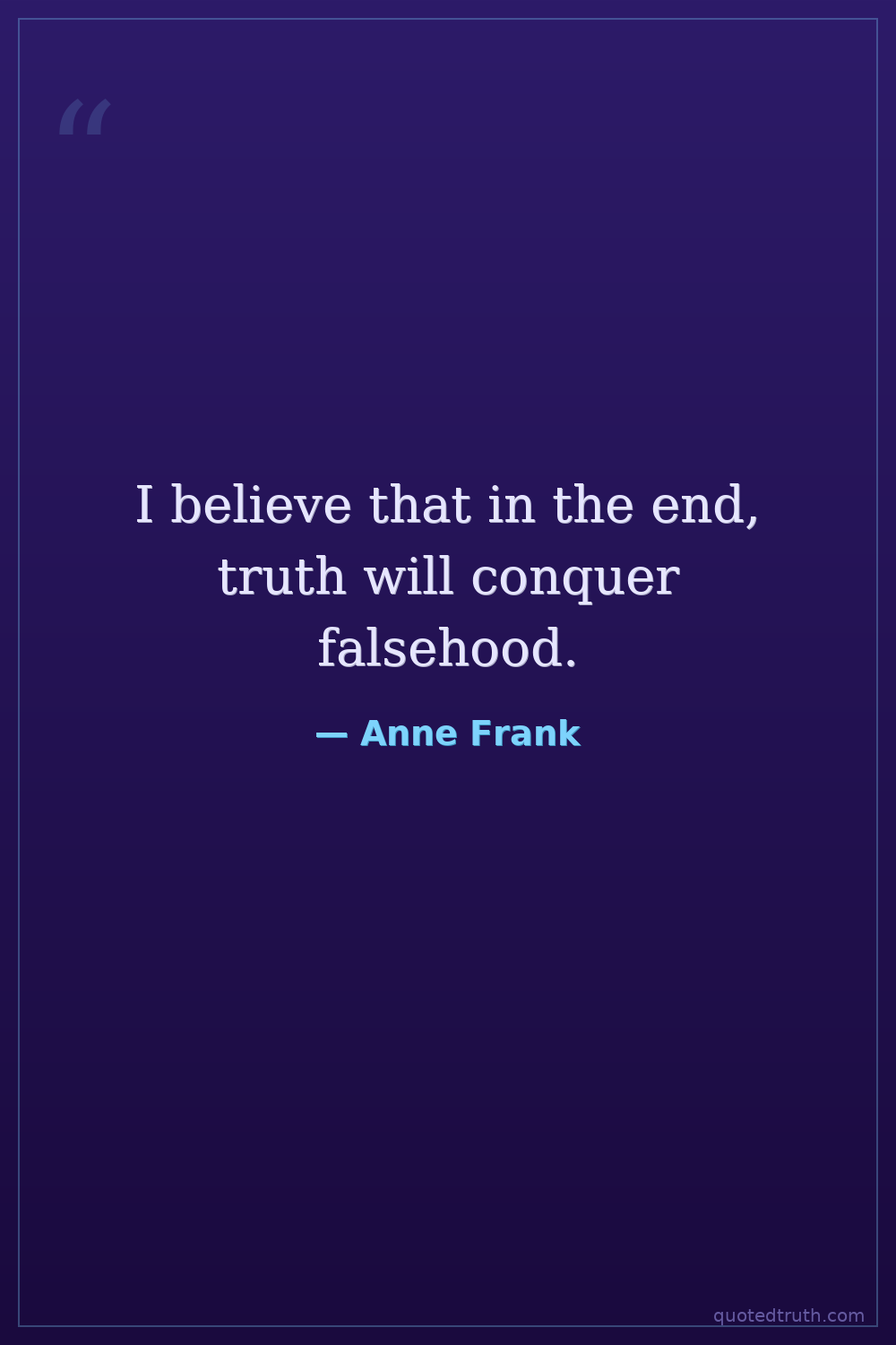 I believe that in the end, truth will conquer falsehood.