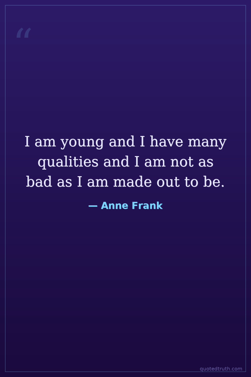 I am young and I have many qualities and I am not as bad as I am made out to be.