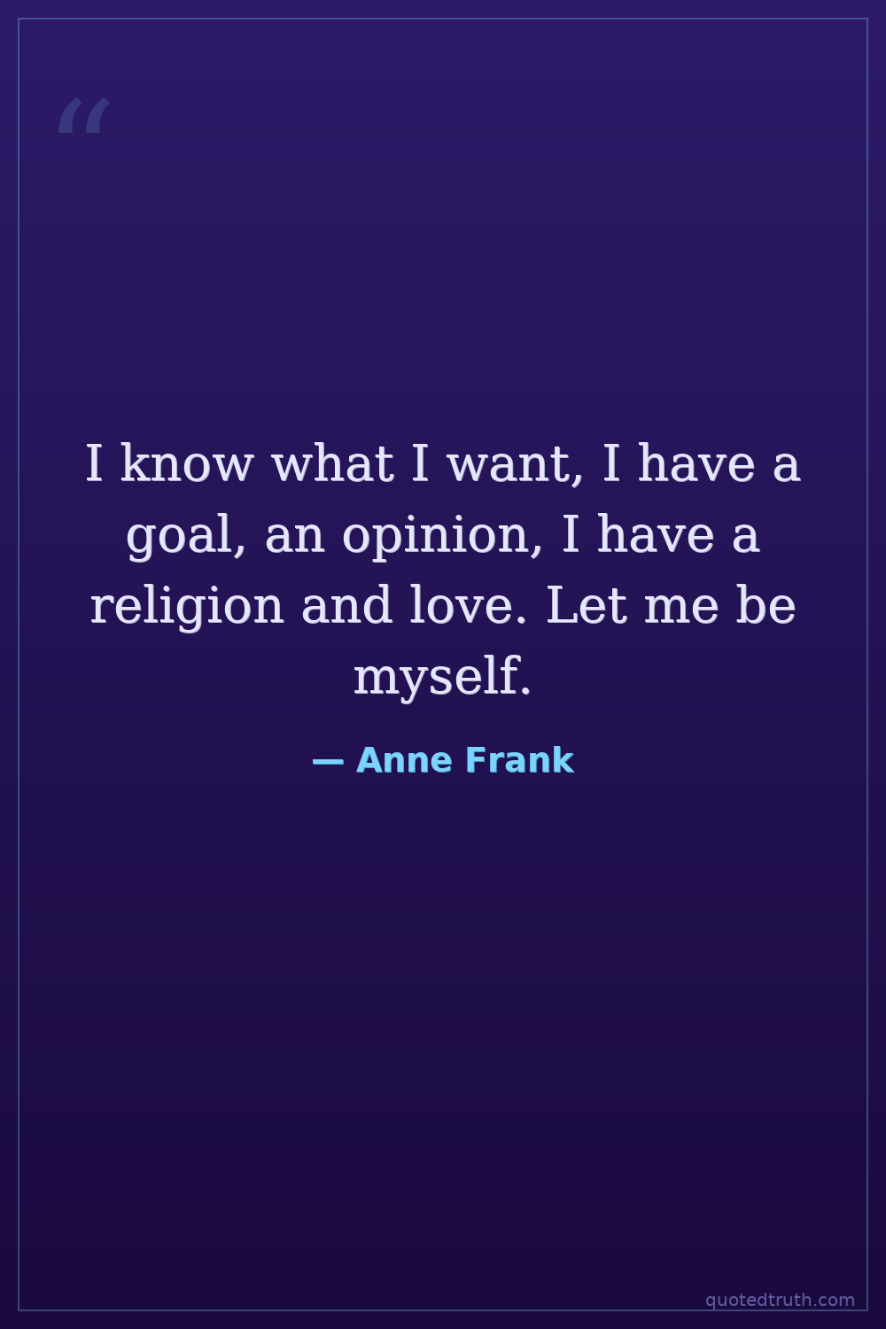 I know what I want, I have a goal, an opinion, I have a religion and love. Let me be myself.