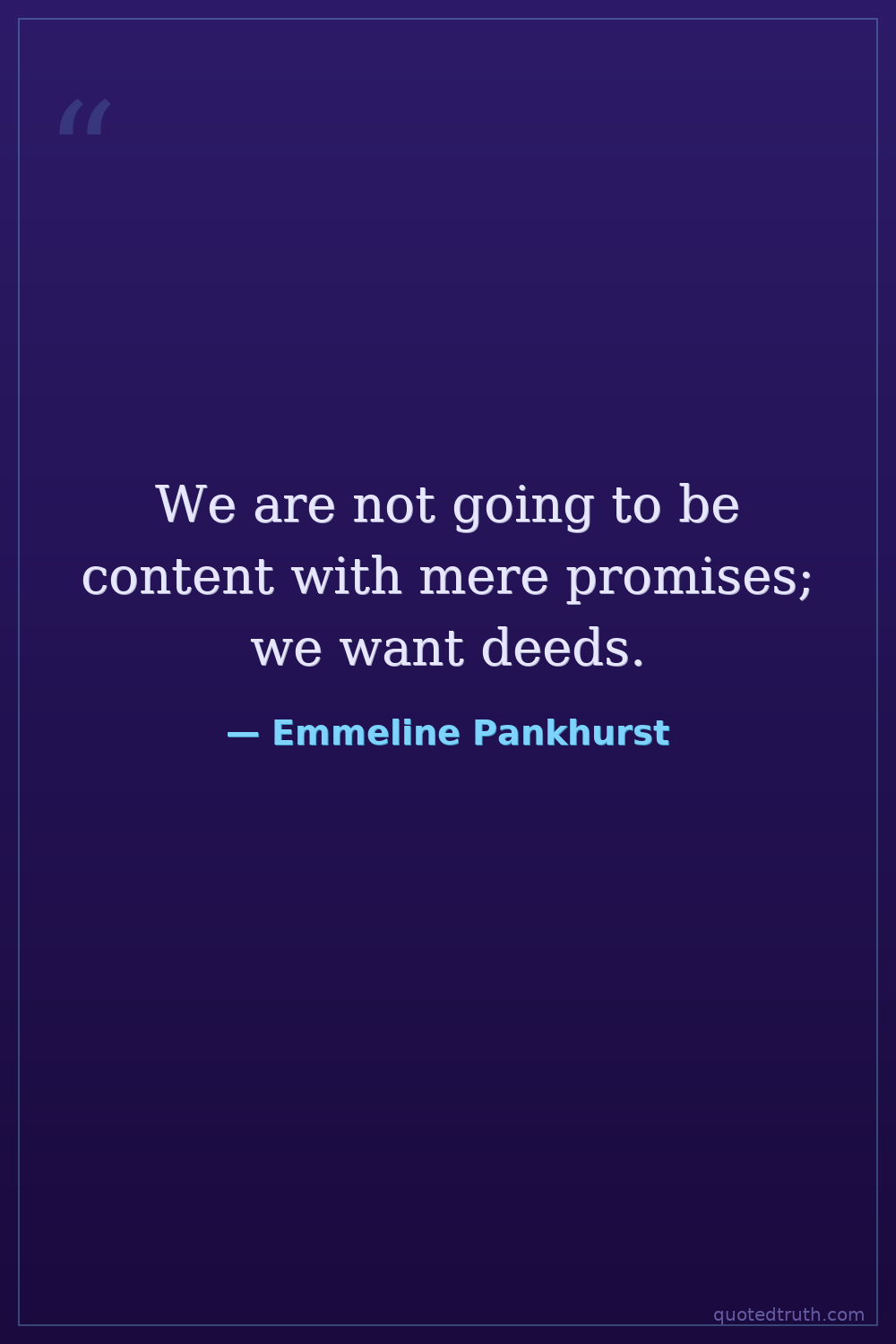 We are not going to be content with mere promises; we want deeds.