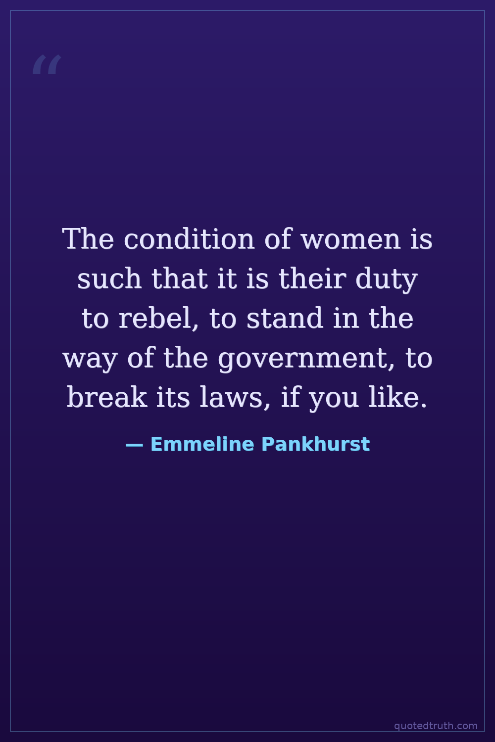 The condition of women is such that it is their duty to rebel, to stand in the way of the government, to break its laws, if you like.
