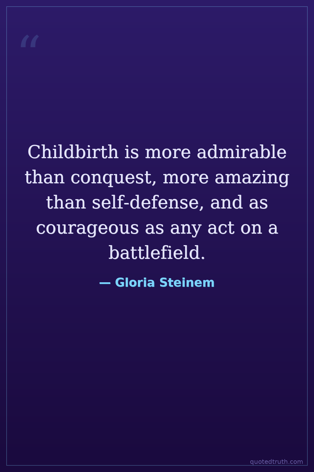 Childbirth is more admirable than conquest, more amazing than self-defense, and as courageous as any act on a battlefield.