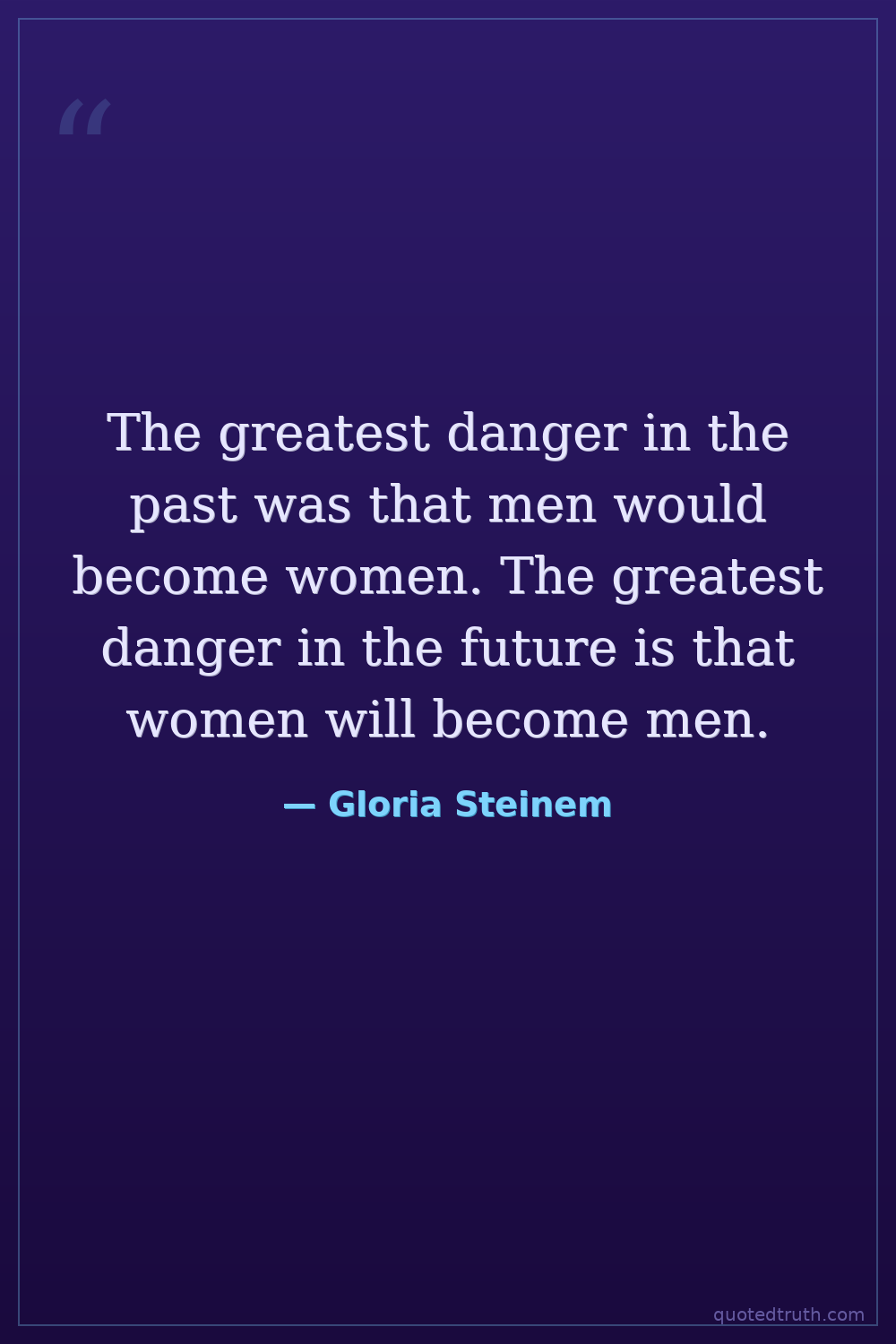 The greatest danger in the past was that men would become women. The greatest danger in the future is that women will become men.