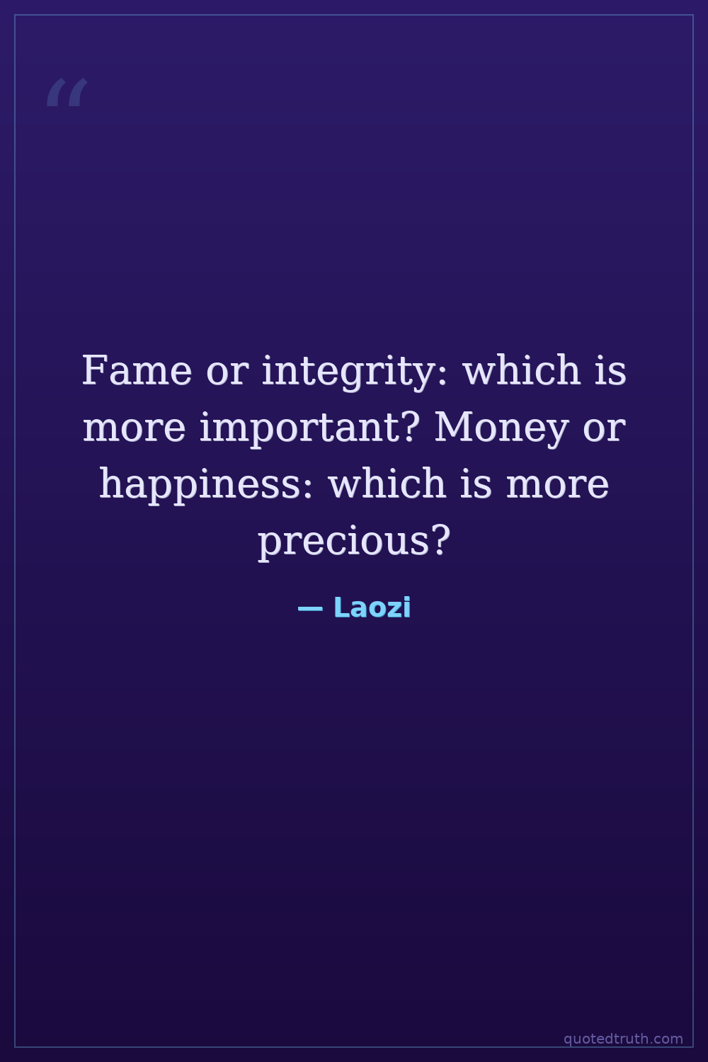 Fame or integrity: which is more important? Money or happiness: which is more precious?