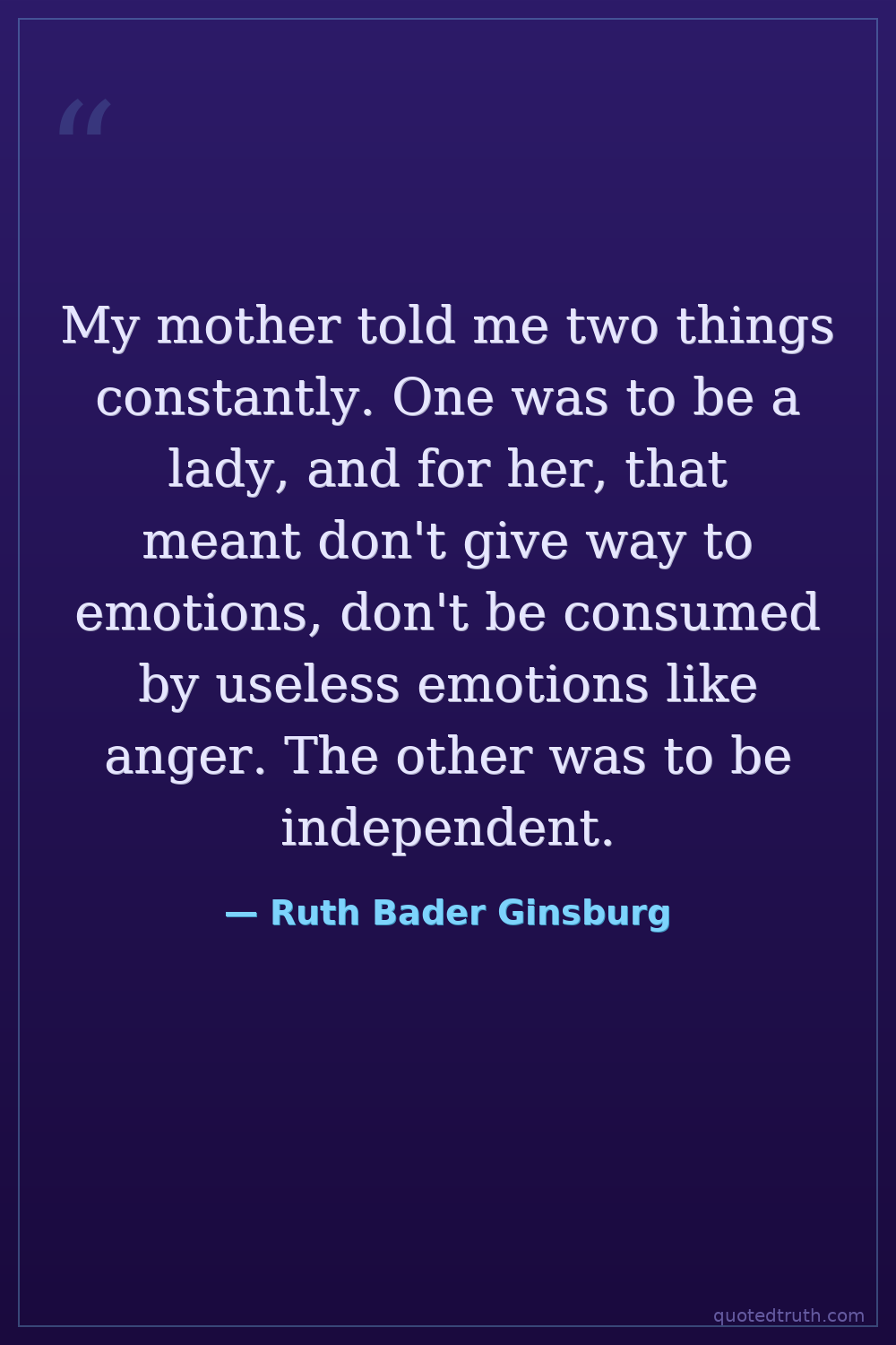 My mother told me two things constantly. One was to be a lady, and for her, that meant don't give way to emotions, don't be consumed by useless emotions like anger. The other was to be independent.