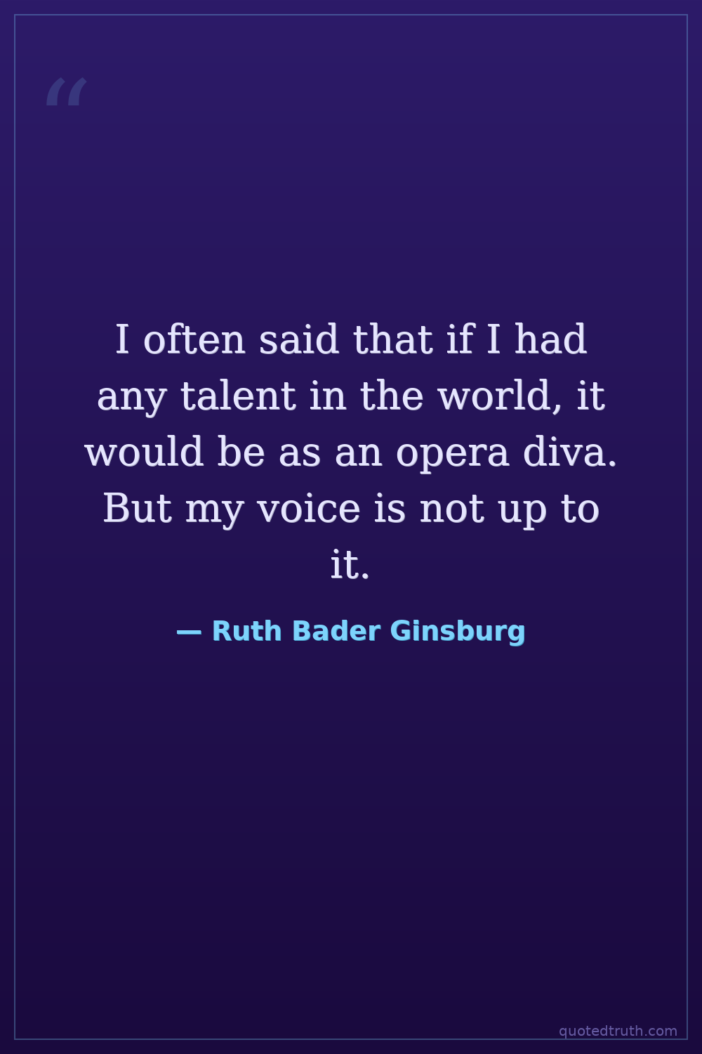 I often said that if I had any talent in the world, it would be as an opera diva. But my voice is not up to it.