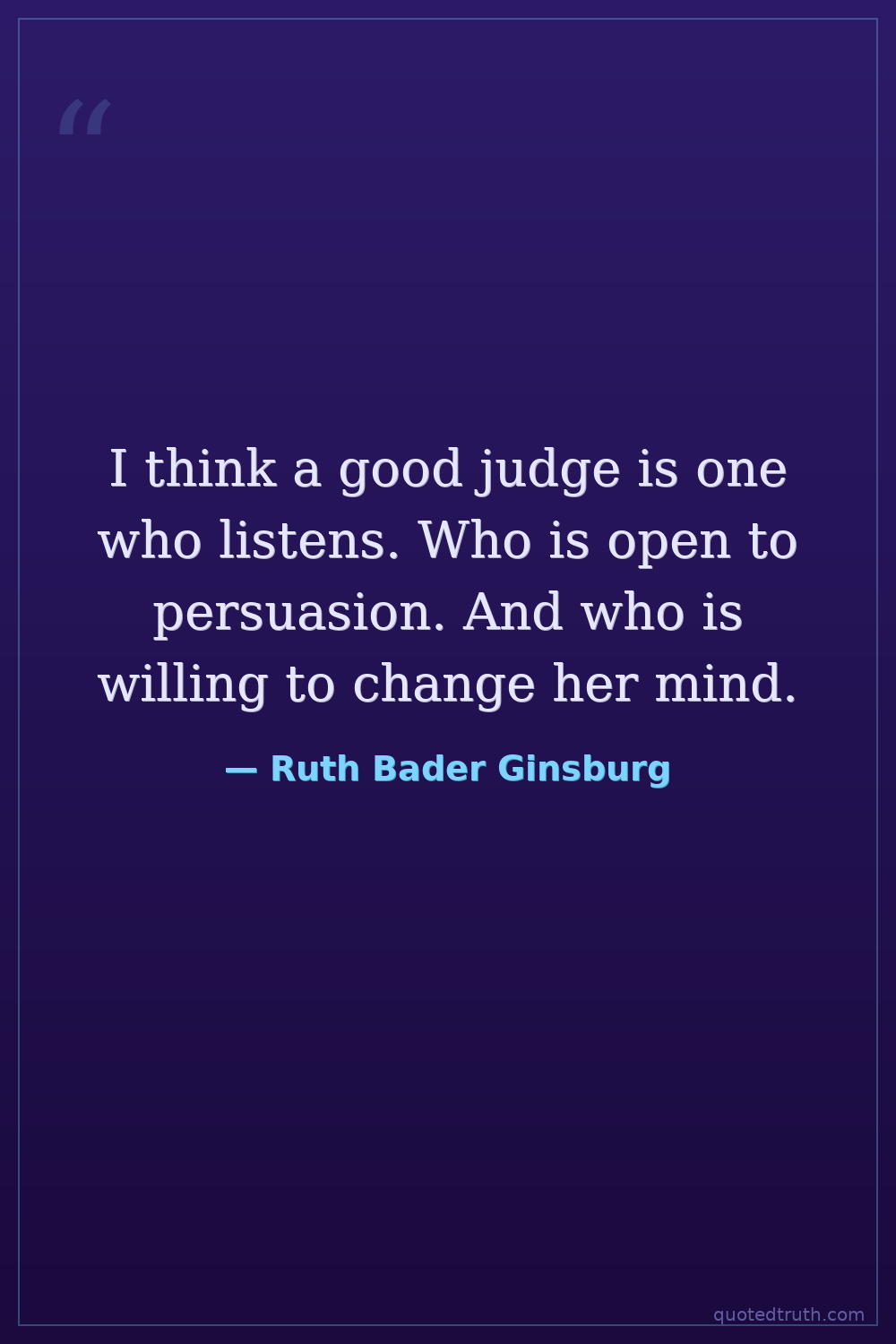 I think a good judge is one who listens. Who is open to persuasion. And who is willing to change her mind.