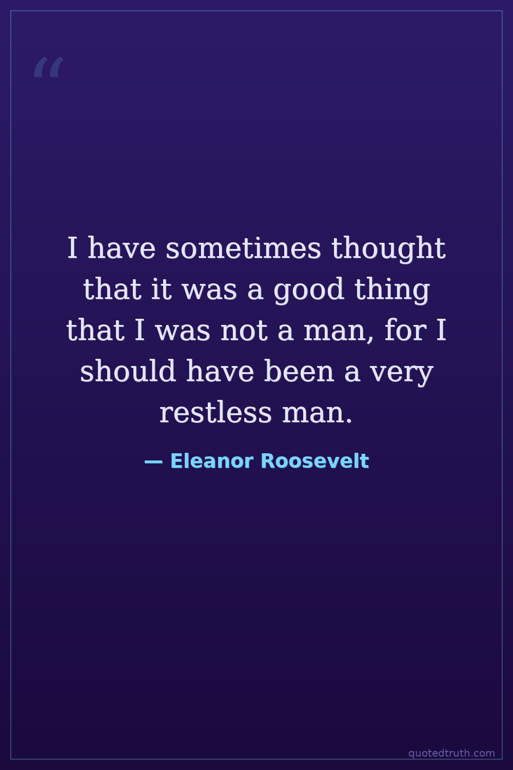 I have sometimes thought that it was a good thing that I was not a man, for I should have been a very restless man.
