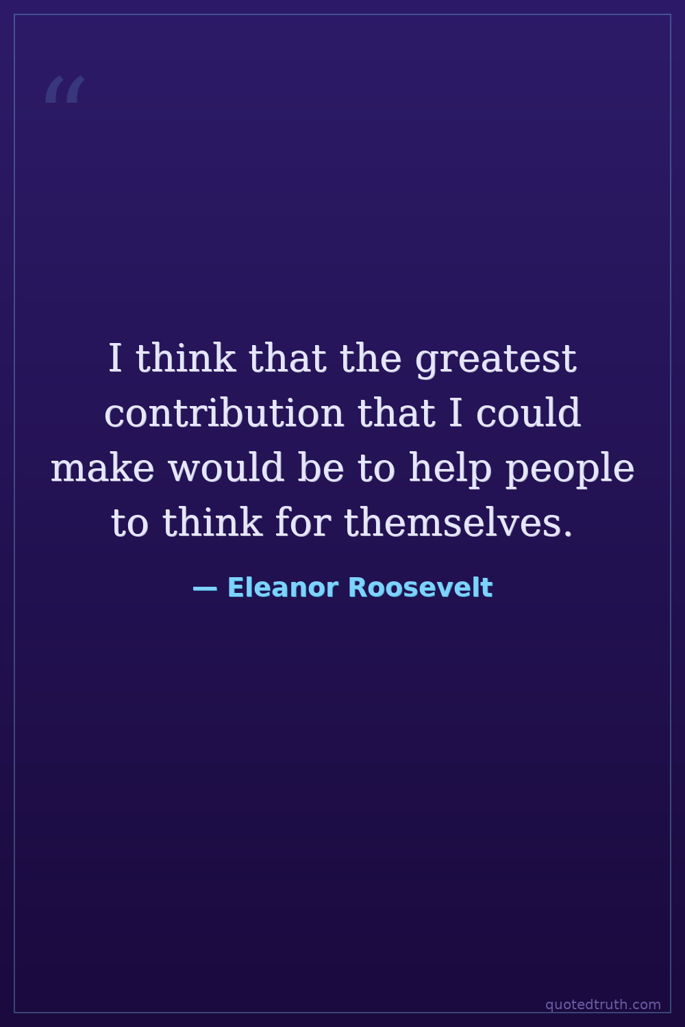 I think that the greatest contribution that I could make would be to help people to think for themselves.