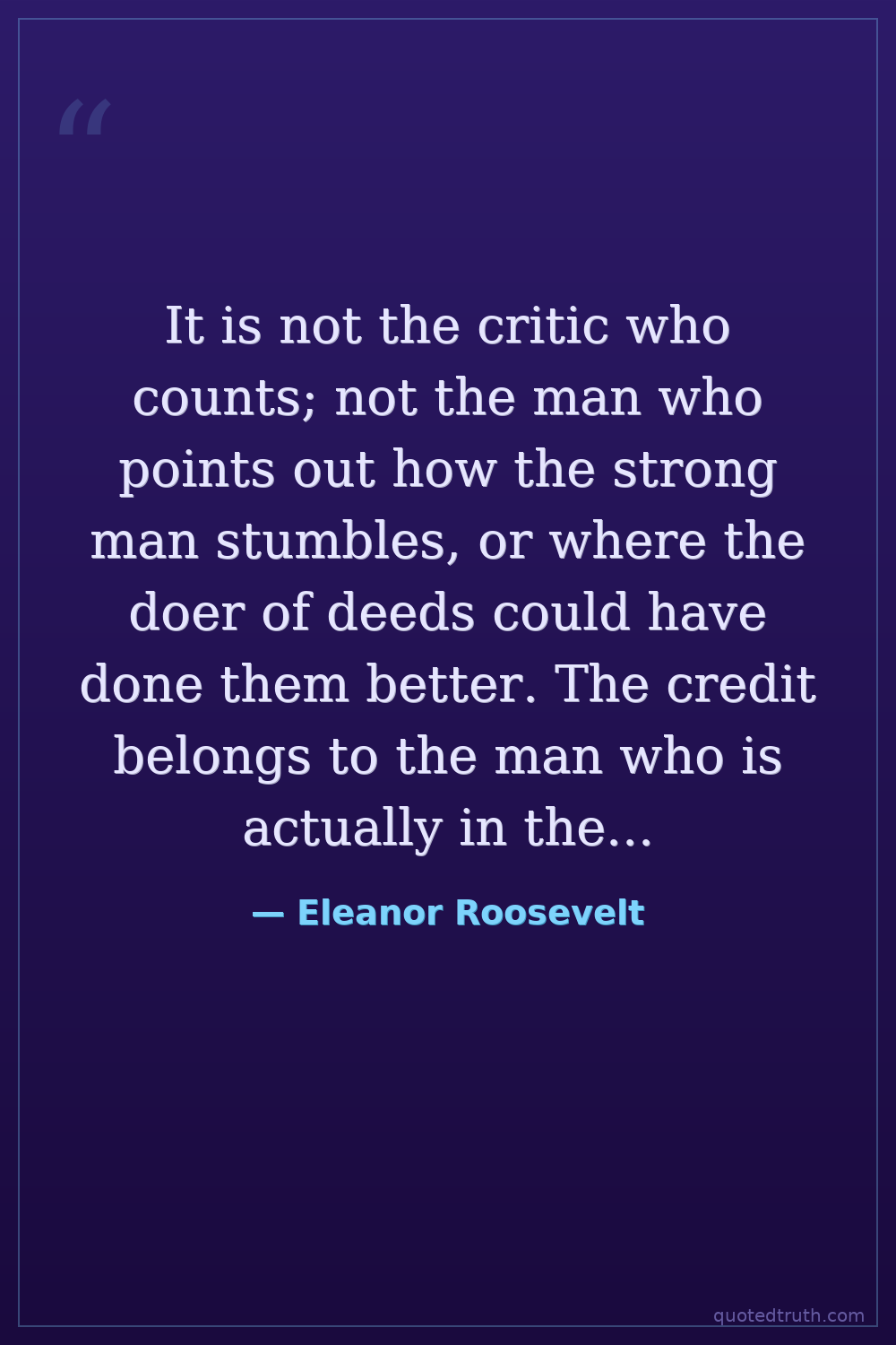 It is not the critic who counts; not the man who points out how the strong man stumbles, or where the doer of deeds could have done them better. The credit belongs to the man who is actually in the arena...