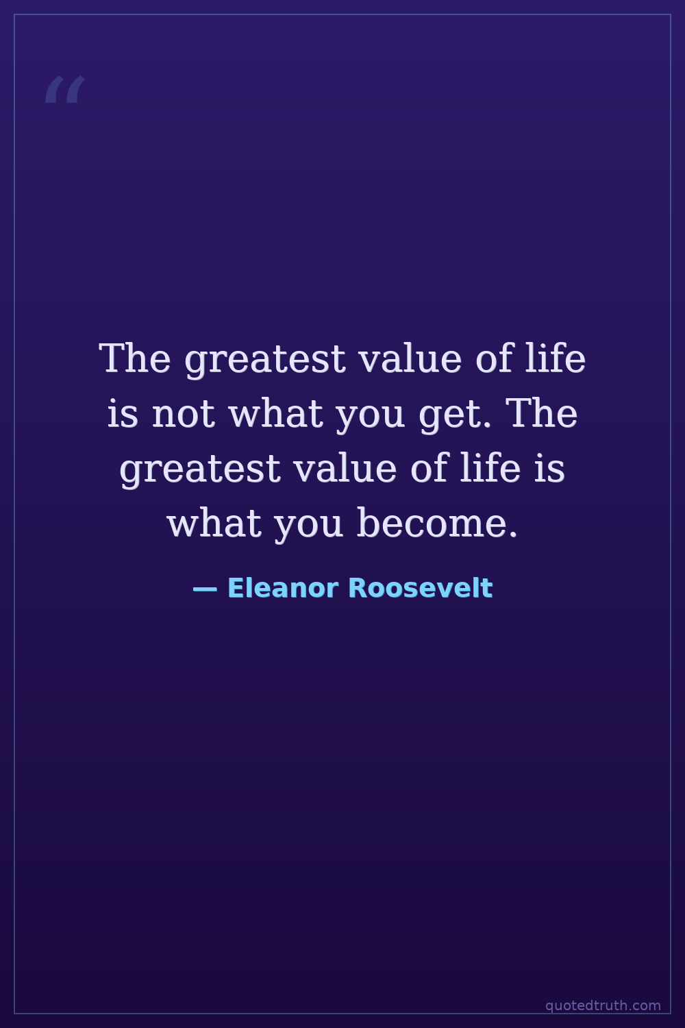 The greatest value of life is not what you get. The greatest value of life is what you become.