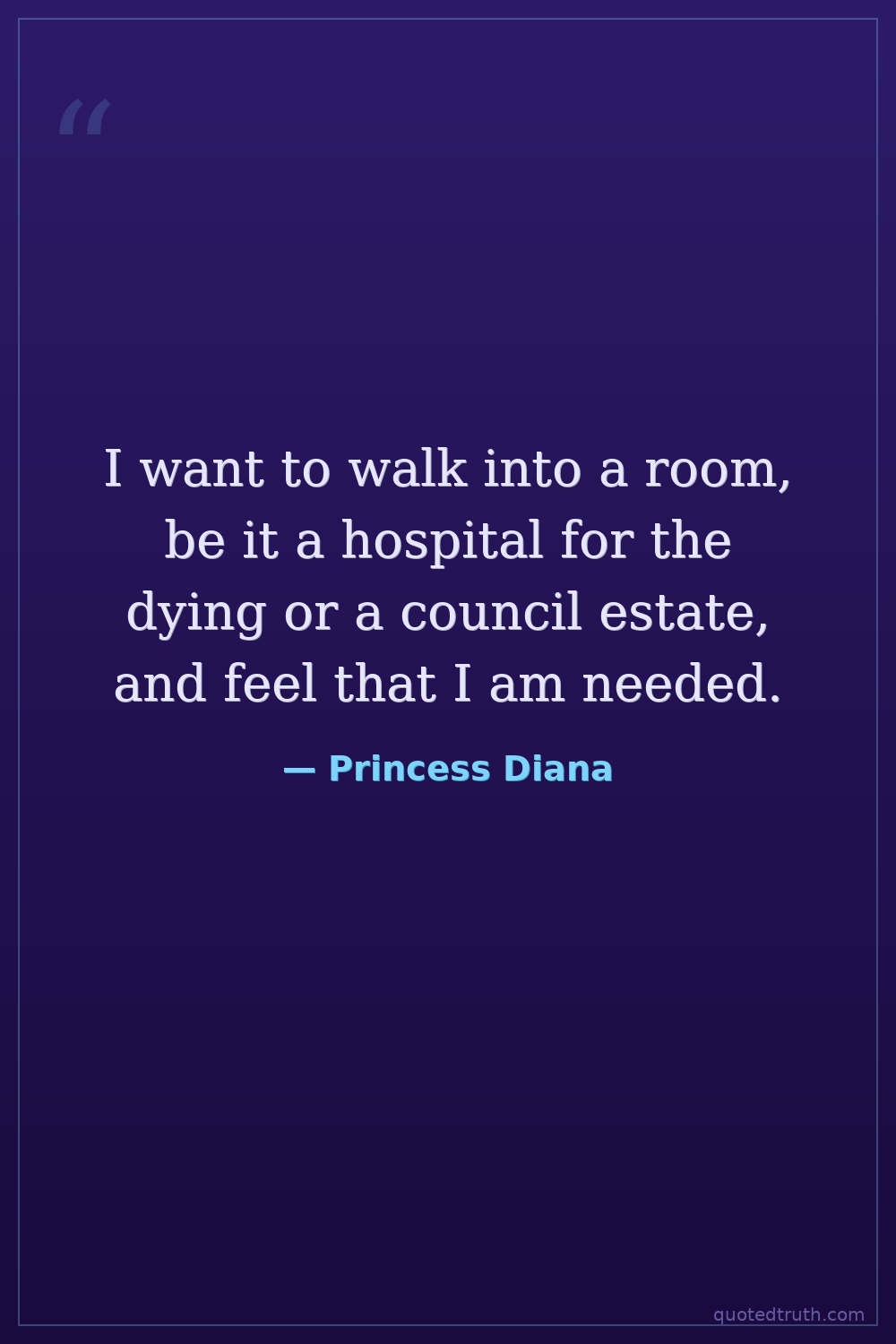 I want to walk into a room, be it a hospital for the dying or a council estate, and feel that I am needed.