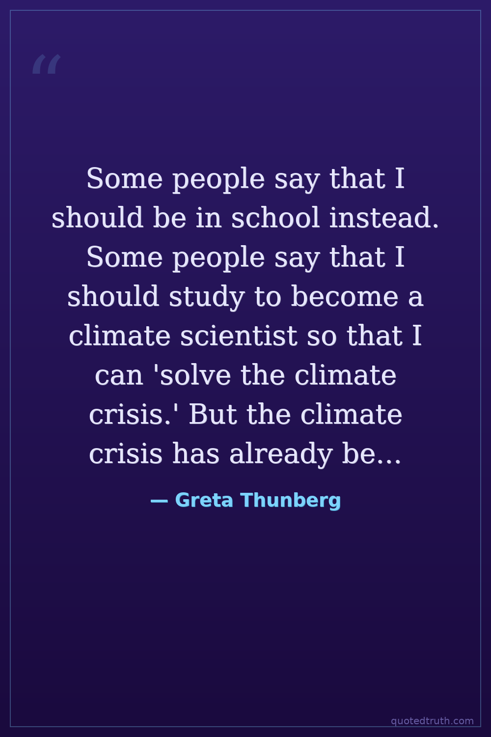 Some people say that I should be in school instead. Some people say that I should study to become a climate scientist so that I can 'solve the climate crisis.' But the climate crisis has already been solved.