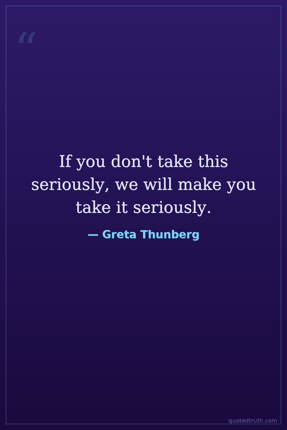 Shocking"Adults keep saying, 'We owe it to the young people to give them hope.' But I don't want your hope. I don't want you to be hopeful. I want you to panic."