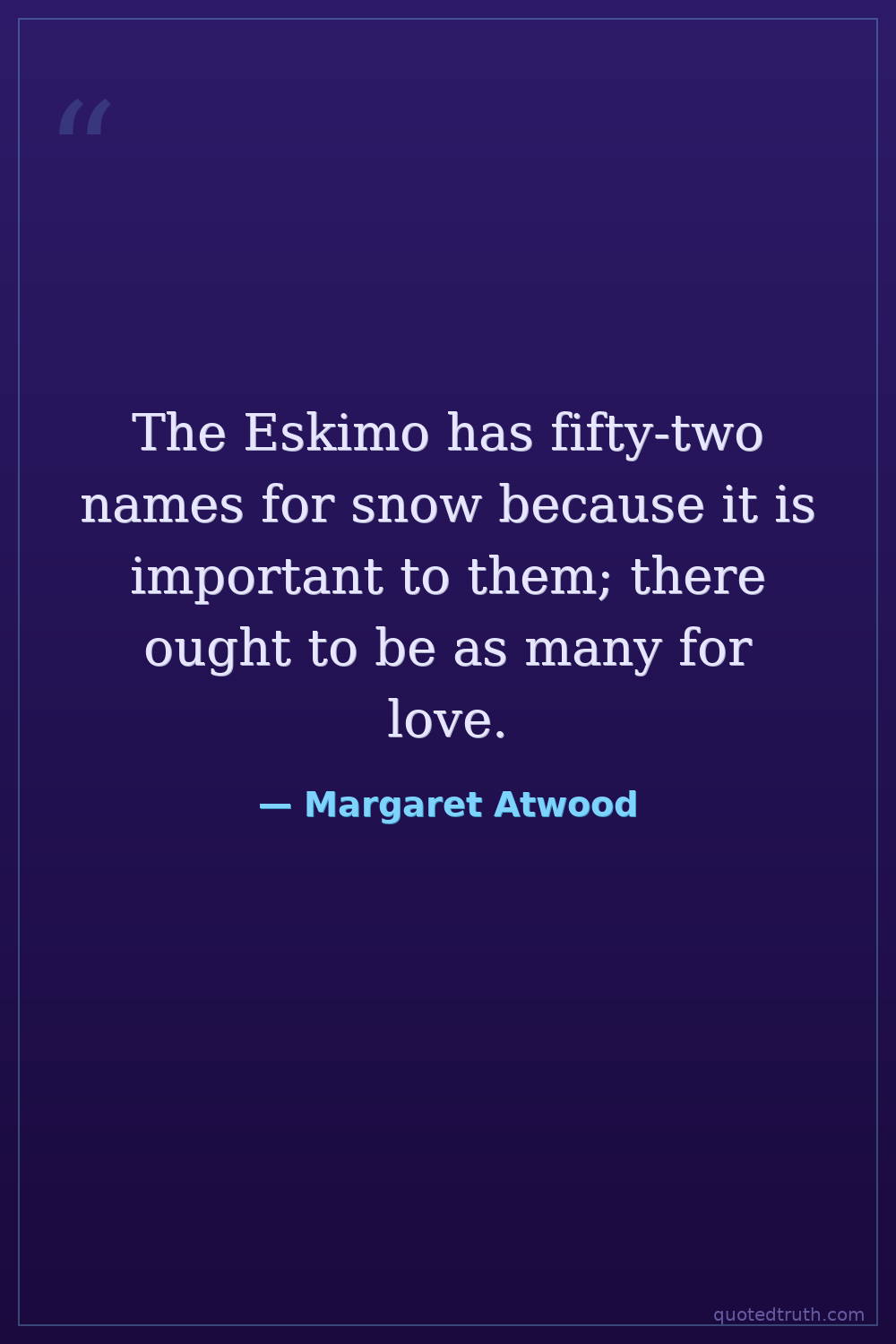 The Eskimo has fifty-two names for snow because it is important to them; there ought to be as many for love.