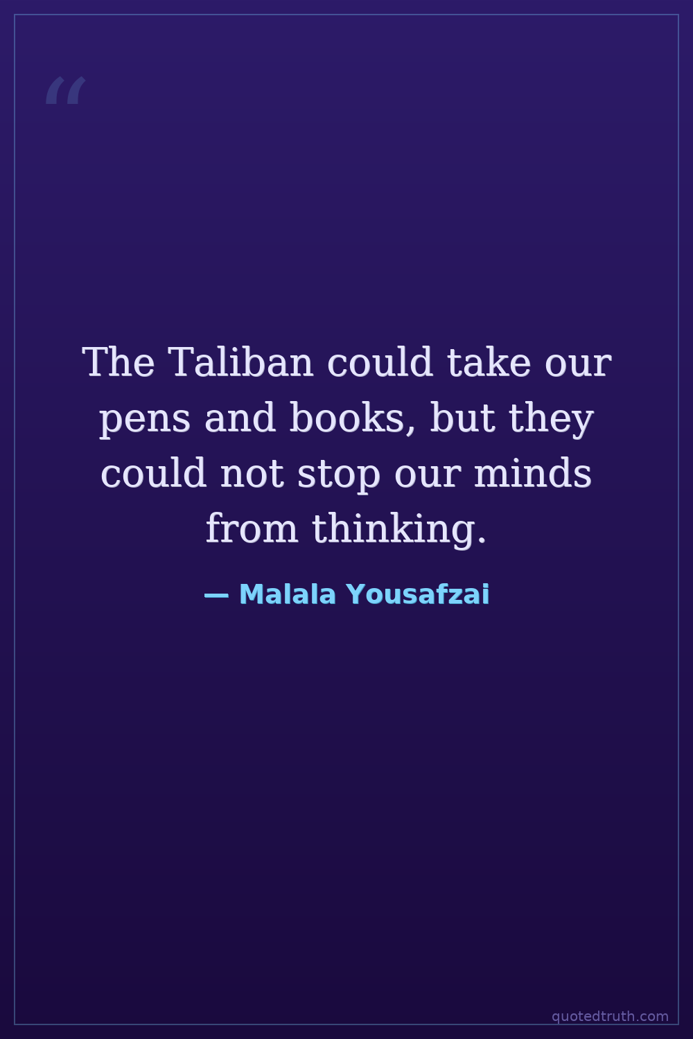 The Taliban could take our pens and books, but they could not stop our minds from thinking.