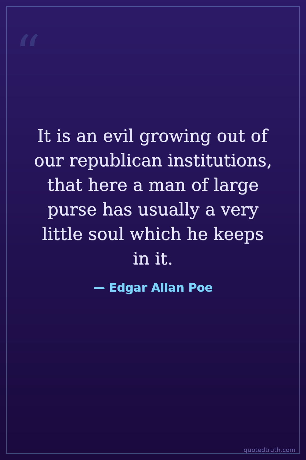 It is an evil growing out of our republican institutions, that here a man of large purse has usually a very little soul which he keeps in it.