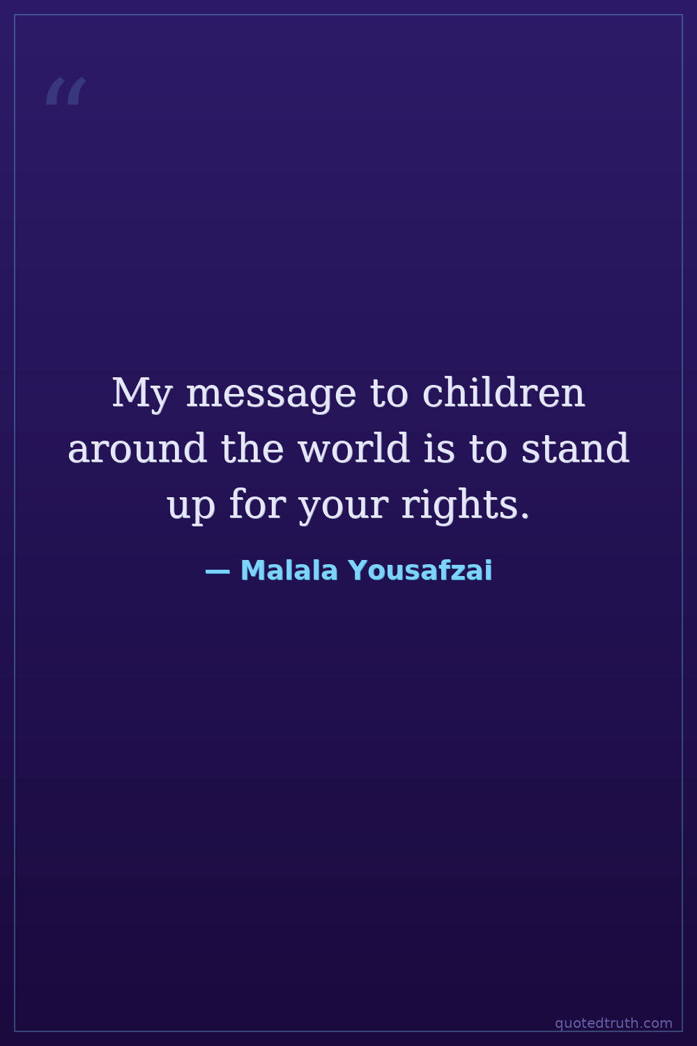 My message to children around the world is to stand up for your rights.