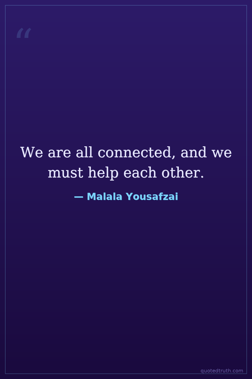 We are all connected, and we must help each other.