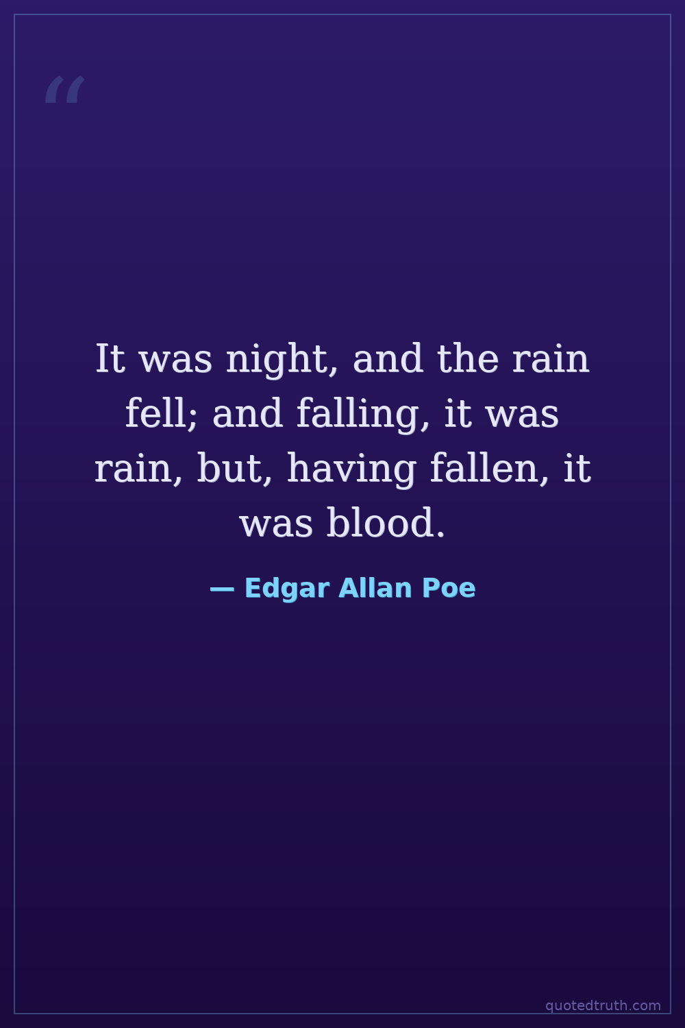 It was night, and the rain fell; and falling, it was rain, but, having fallen, it was blood.