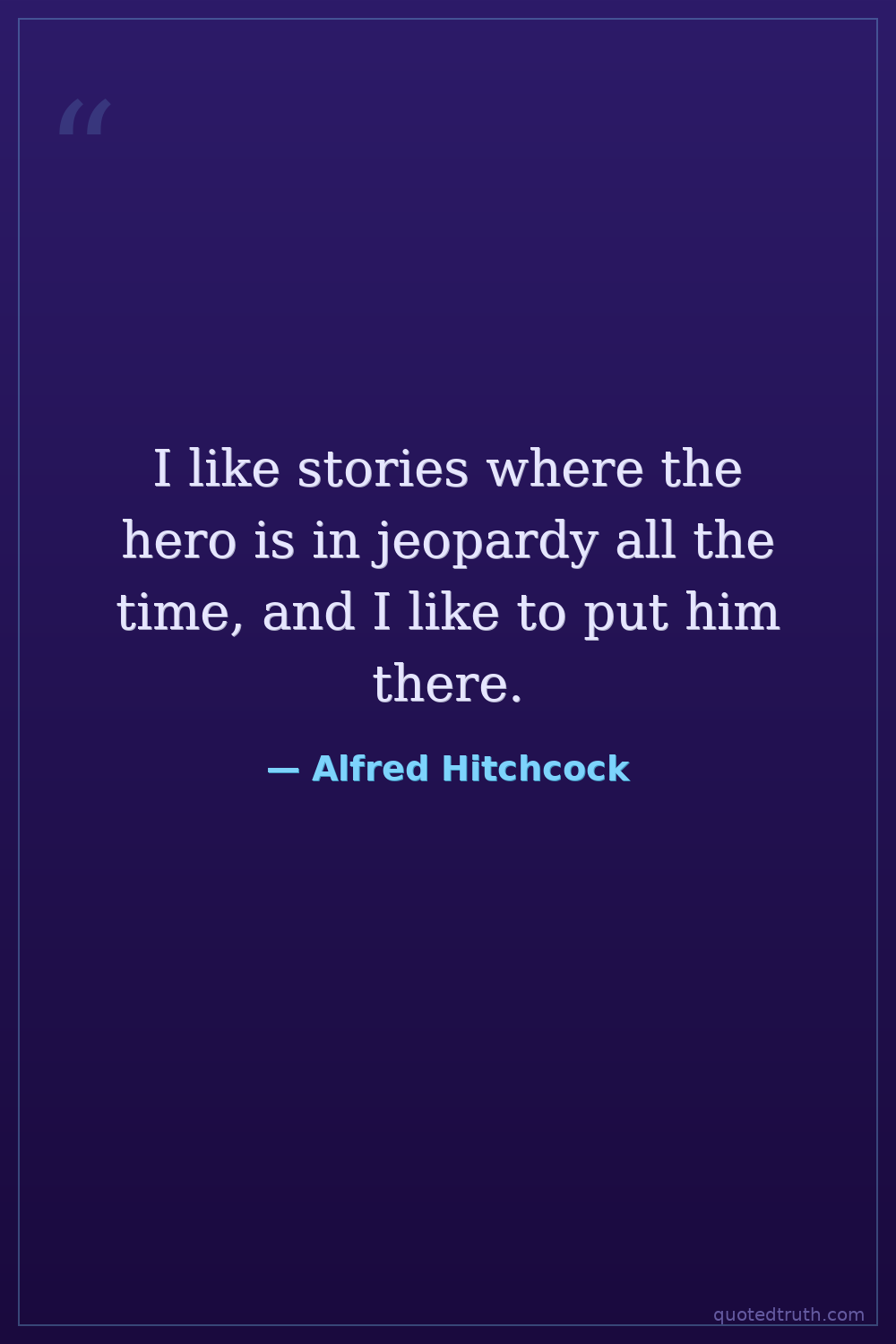 I like stories where the hero is in jeopardy all the time, and I like to put him there.