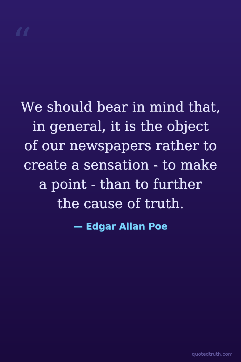 We should bear in mind that, in general, it is the object of our newspapers rather to create a sensation - to make a point - than to further the cause of truth.