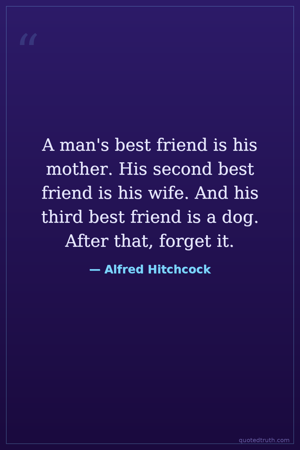 A man's best friend is his mother. His second best friend is his wife. And his third best friend is a dog. After that, forget it.