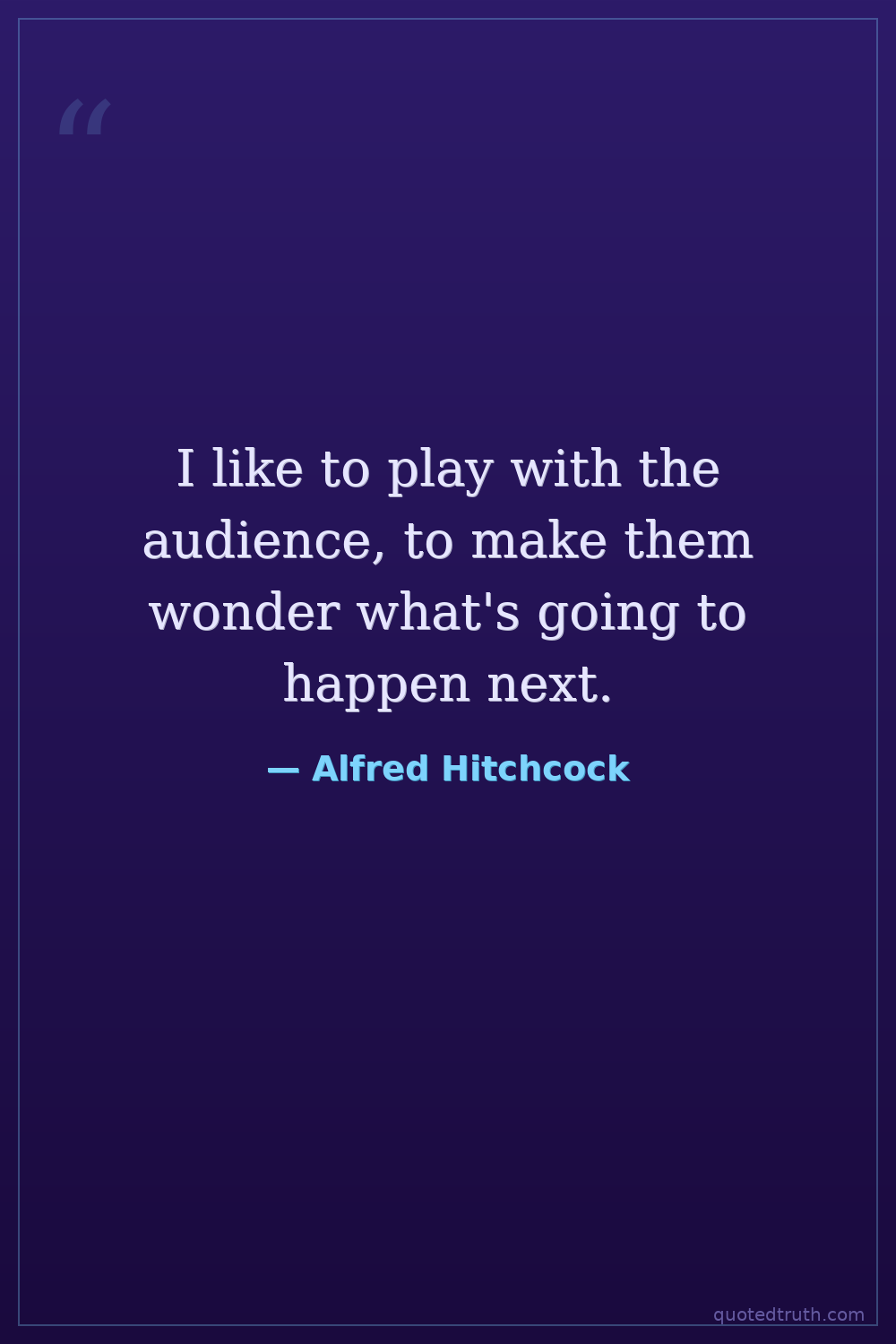 I like to play with the audience, to make them wonder what's going to happen next.
