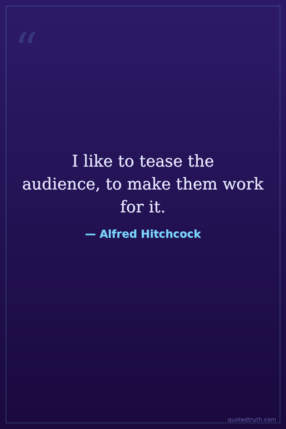 I like to tease the audience, to make them work for it.