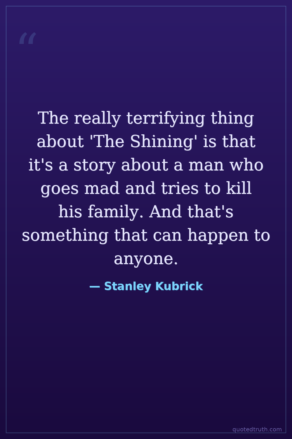 The really terrifying thing about 'The Shining' is that it's a story about a man who goes mad and tries to kill his family. And that's something that can happen to anyone.