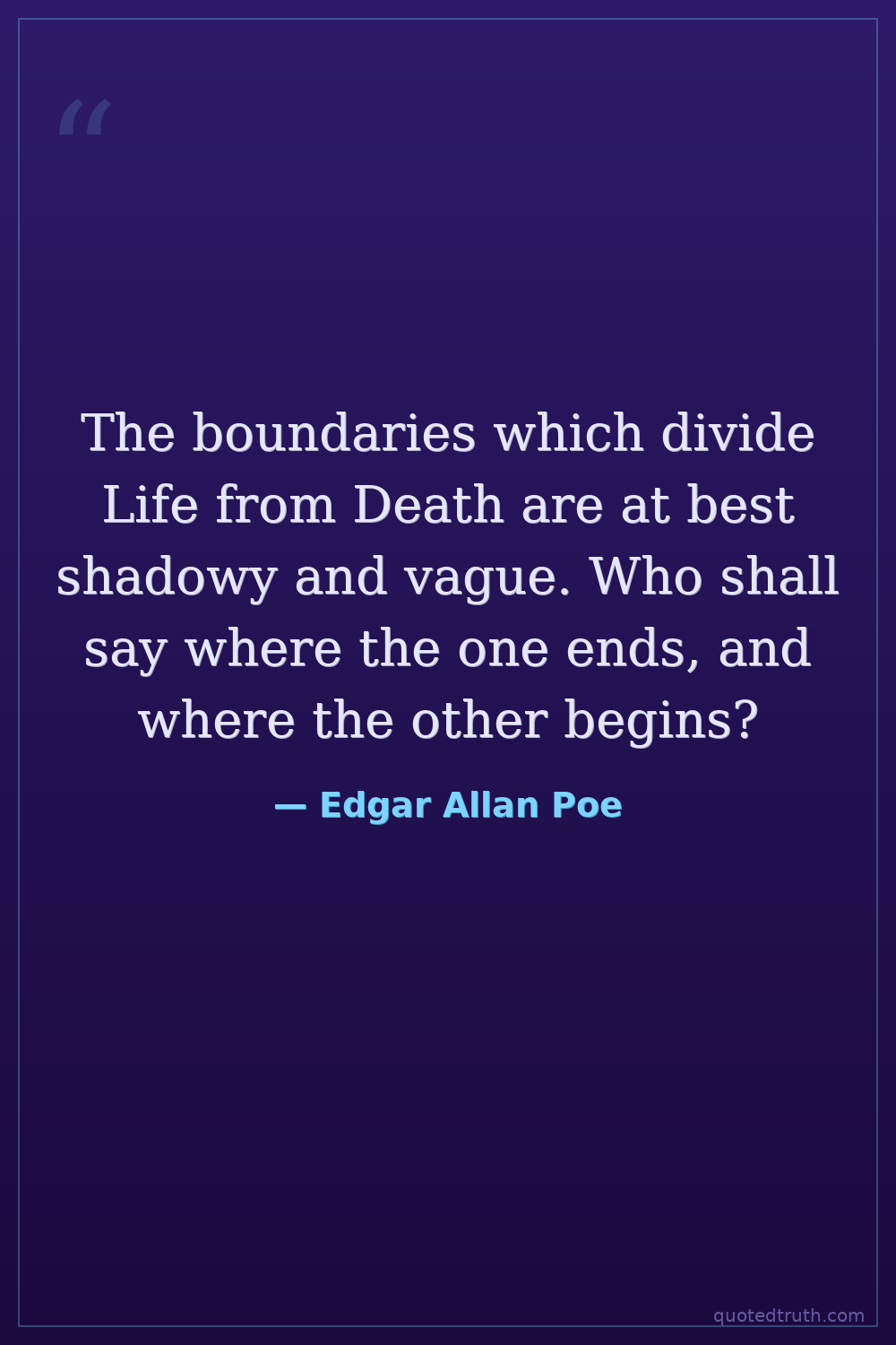 The boundaries which divide Life from Death are at best shadowy and vague. Who shall say where the one ends, and where the other begins?