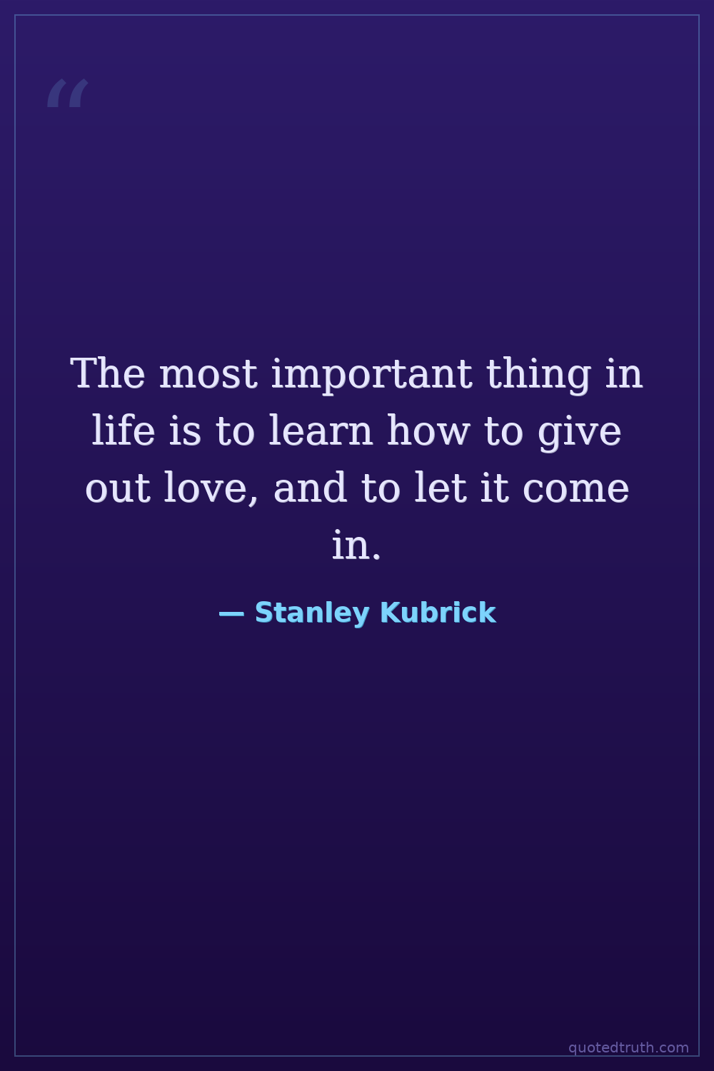 The most important thing in life is to learn how to give out love, and to let it come in.