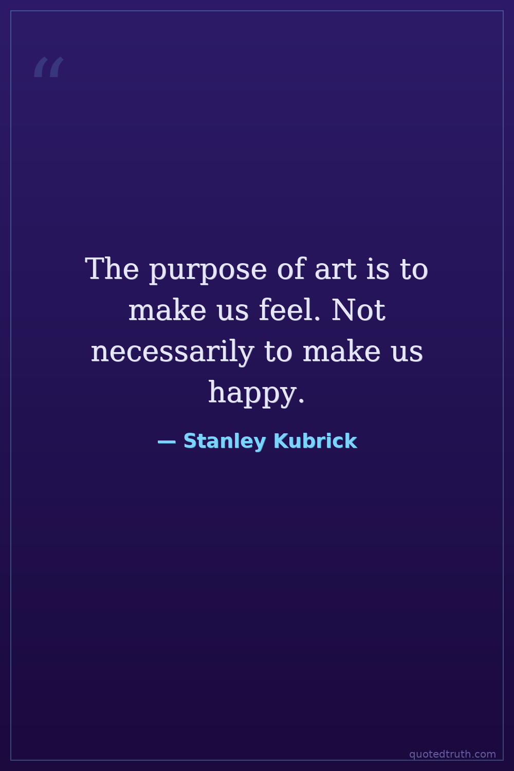 The purpose of art is to make us feel. Not necessarily to make us happy.