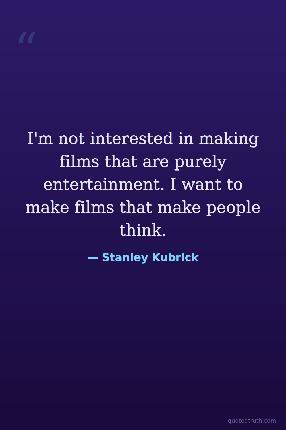 I'm not interested in making films that are purely entertainment. I want to make films that make people think.