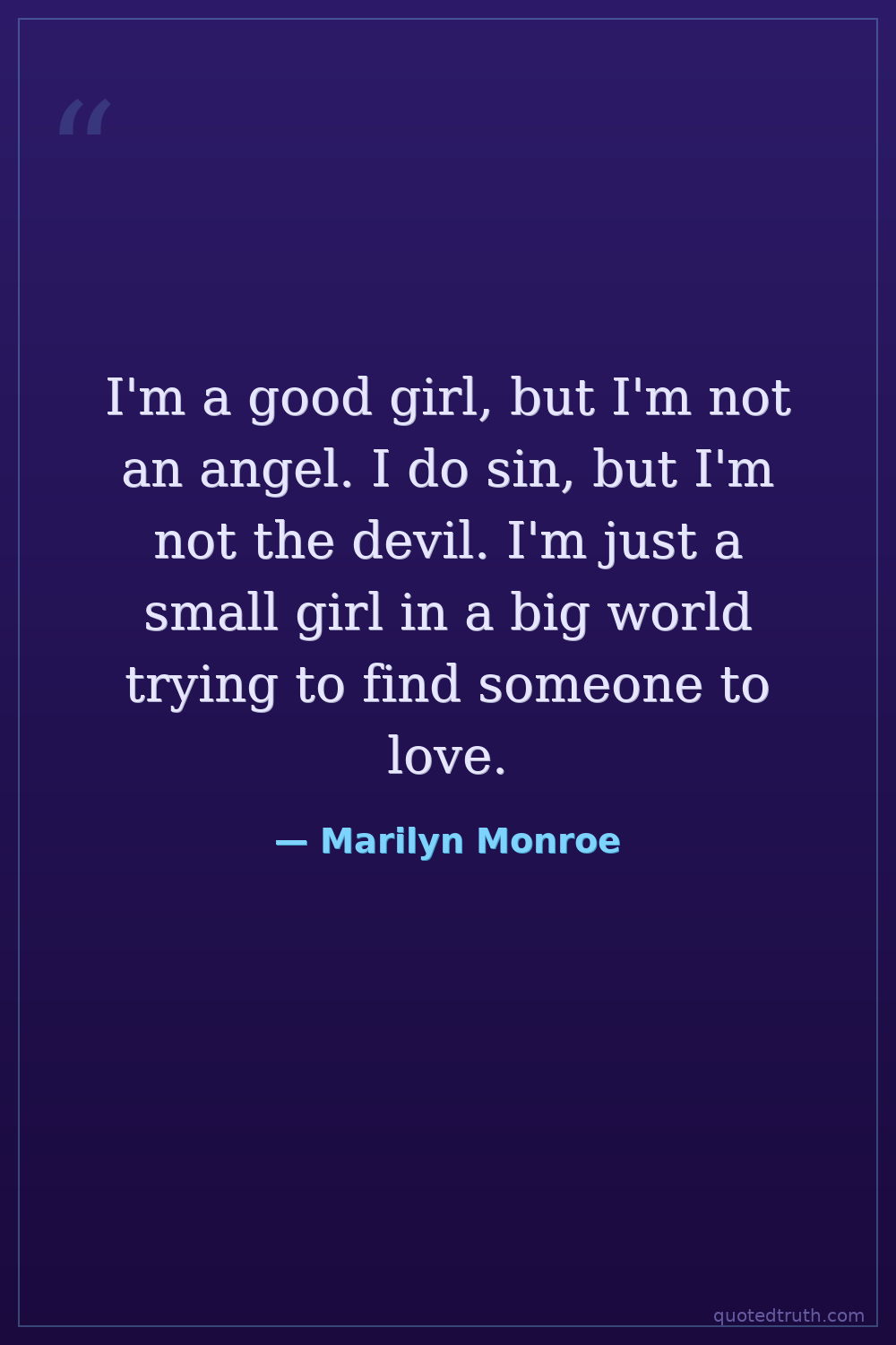 I'm a good girl, but I'm not an angel. I do sin, but I'm not the devil. I'm just a small girl in a big world trying to find someone to love.